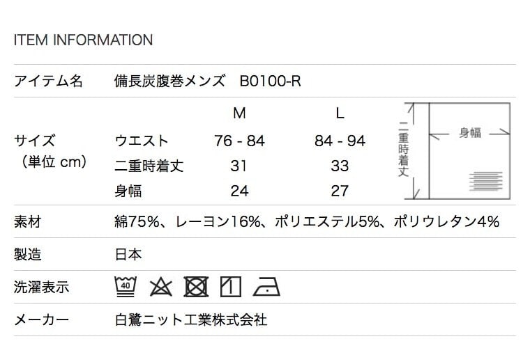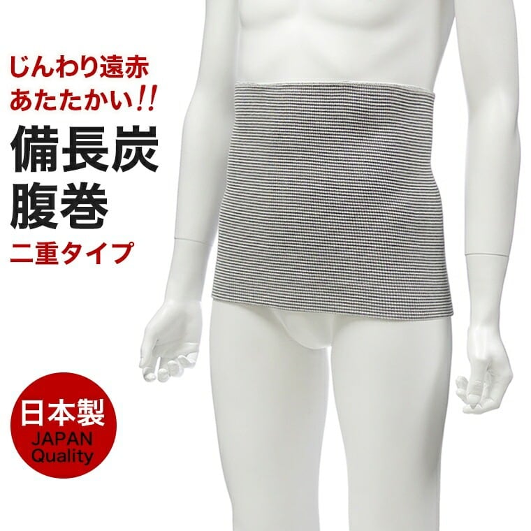 メンズ インナー 夏 冬 腹巻 備長炭 用 保温 防寒 冷房 ネックウォーマー おしゃれ ボーダー プレゼント 二重 2つ折り 綿 遠赤外線 あったか ポケット 下着 男 白鷺ニット 日本製 ウエストウォーマー #haramaki M L 備長炭腹巻き B0100C-RT 涼しい 肌着