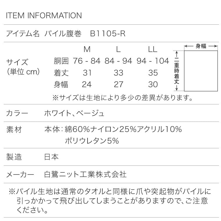 メンズ 夏 冬 タオル地 二重 腹巻 年間 パイル生地 抗菌防臭加工 防寒 温かい 冷房 対策 二つ折り はらまき 腹巻き 男性 紳士 下着 肌着 日本製 ウエストウォーマー #haramaki ホワイト/ベージュ M/L/LL B1105C-E 涼しい