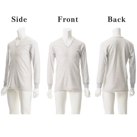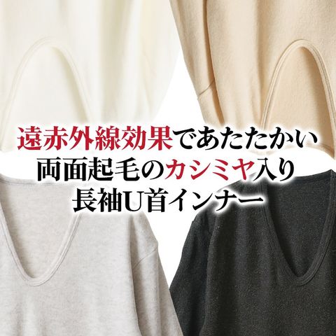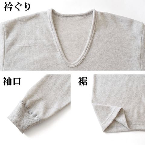 メンズ インナー 長袖 遠赤 カシミヤ入り 両面 起毛 秋冬 暖かい 日本製 ウール混 遠赤外線 保温 Uネック ストレッチ 男性 肌着 紳士 下着 オフホワイト/ベージュ/ヘザーグレー M/L/LL D0120C-E 防寒