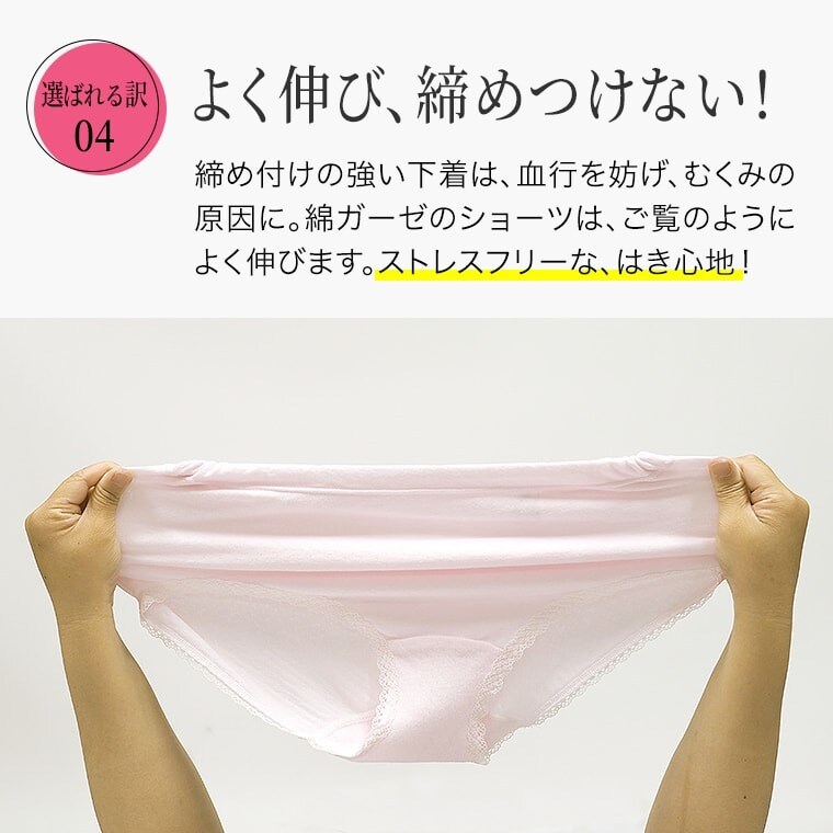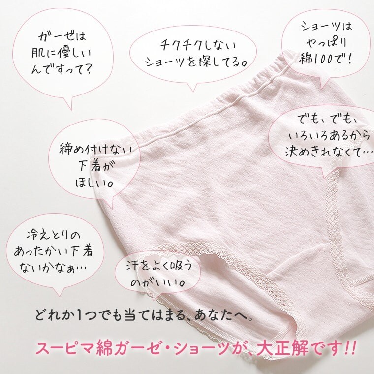 レディース インナー ショーツ 日本製 レース付き 綿ガーゼ スーピマ コットン 綿100% 婦人 下着 肌着 G5020B-RT