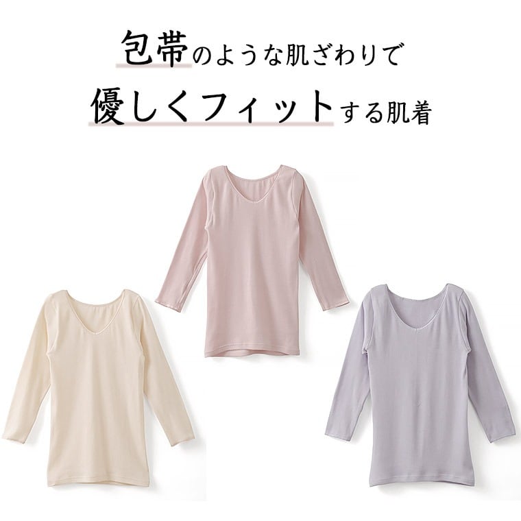 レディース インナー 長袖 包帯 のように 優しい 7分袖 日本製 締め付けない 保湿 通気 性 年間 フィット 伸縮性 消臭 綿混 婦人 女性 下着 肌着 ピンク/ベージュ/パープル M/L/LL G5062N-R