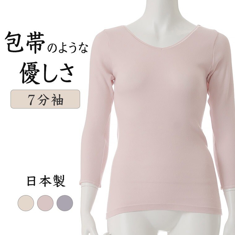 レディース インナー 長袖 包帯 のように 優しい 7分袖 日本製 締め付けない 保湿 通気 性 年間 フィット 伸縮性 消臭 綿混 婦人 女性 下着 肌着 ピンク/ベージュ/パープル M/L/LL G5062N-R