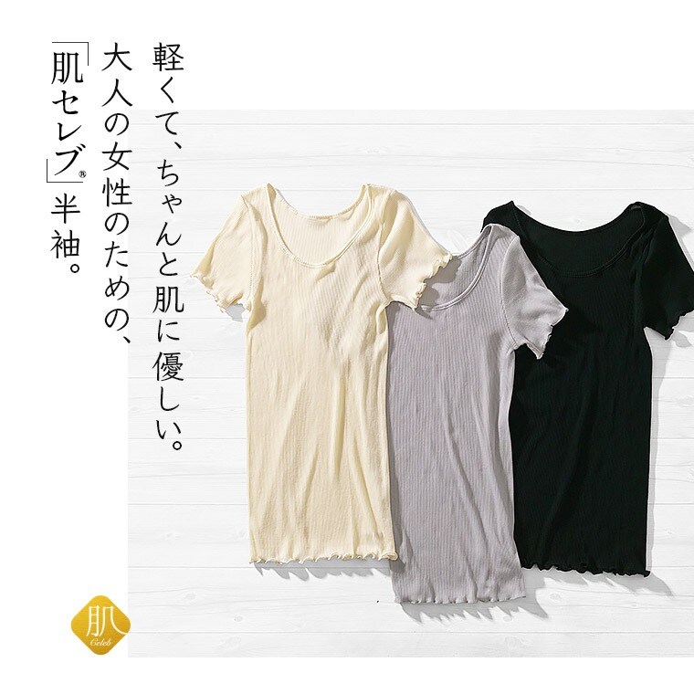 レディース インナー シャツ 半袖 3枚組 肌セレブ 綿100% コットンリブ 日本製 ストレッチ 国産 日本製 肌着 G5091X-RT
