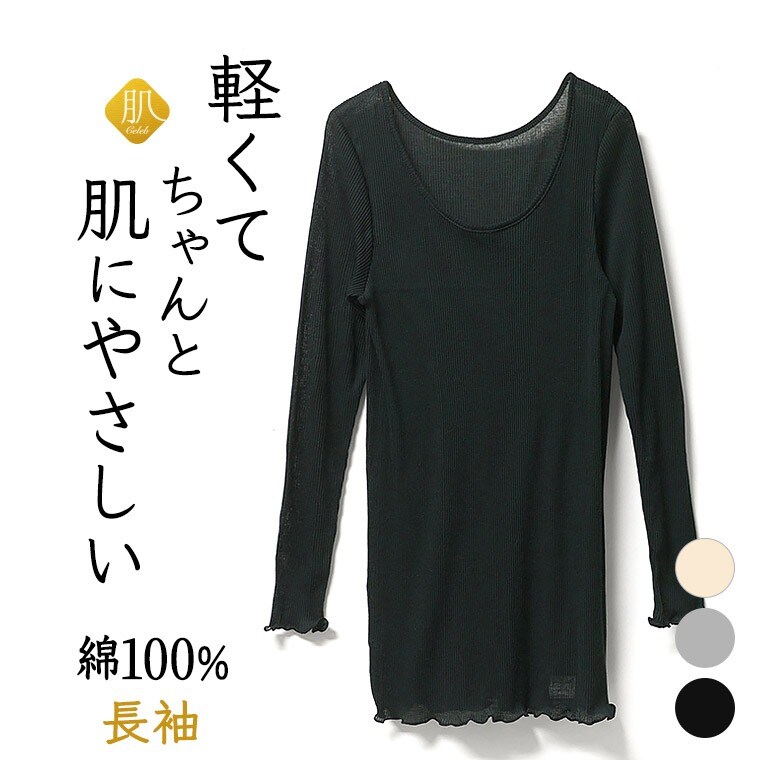 レディース インナー シャツ 長袖 肌セレブ 綿100% 日本製 コットンリブ ストレッチ 国産 日本製 肌着 G5092X-RT