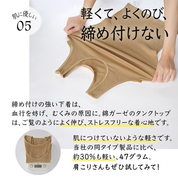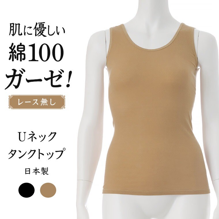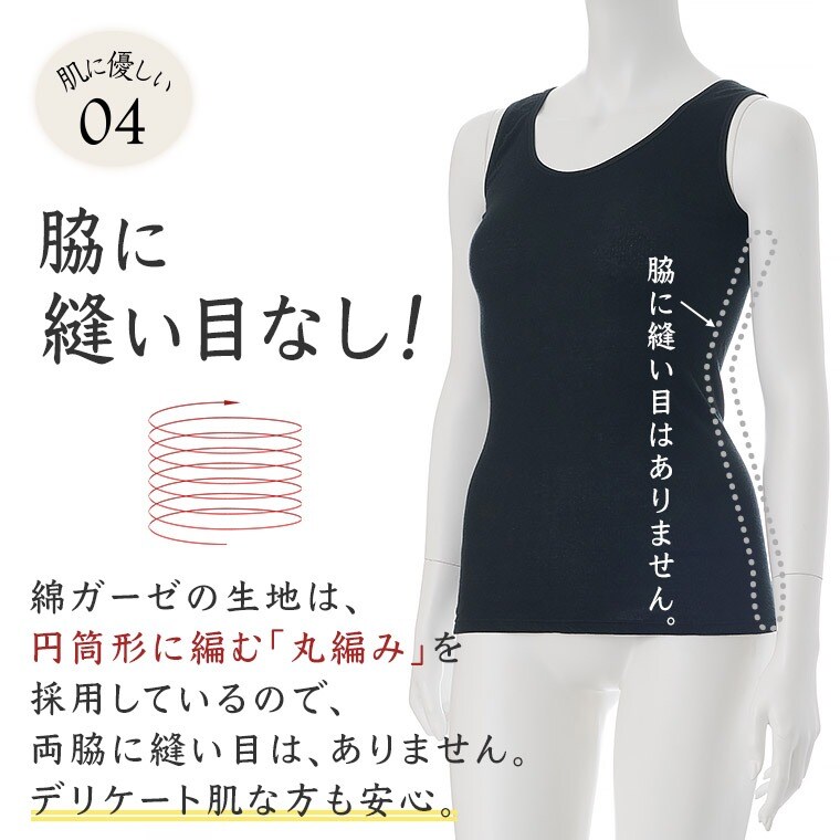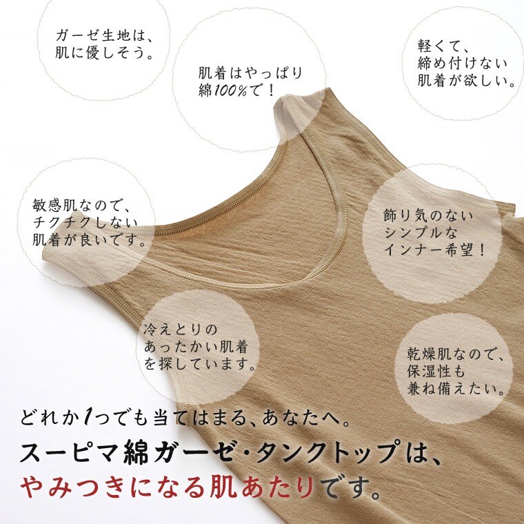 レディース インナー シャツ 綿ガーゼ タンクトップ 日本製 シンプル 年間 スーピマ 綿 100 % 敏感肌 コットン 100 おしゃれ 締め付けない ババ あったか 冷えとり 高級 M/L/LL G9160K-RT 肌着