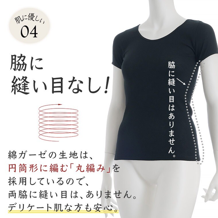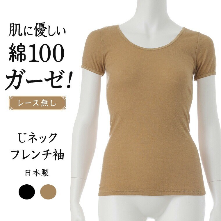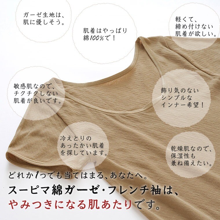 レディース インナー シャツ シャツ 半袖 綿ガーゼ 日本製 フレンチ袖 シンプル 年間 スーピマ 綿 100 % 敏感肌 コットン 100 おしゃれ 締め付けない ババ あったか 冷えとり 高級 M/L/LL G9161K-RT 肌着