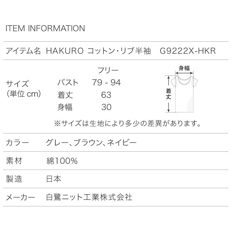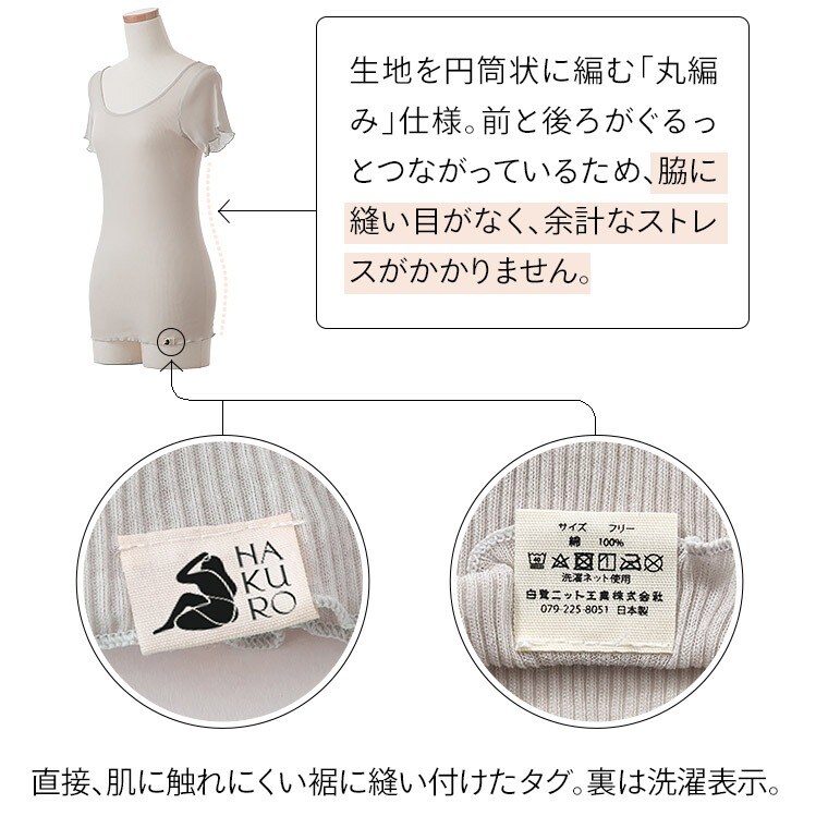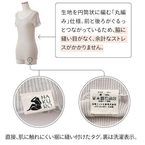 レディース インナー シャツ 半袖 HAKURO 日本製 綿100% バレエネック コットン リブ 年間 肌着 下着 G9222X-HKR