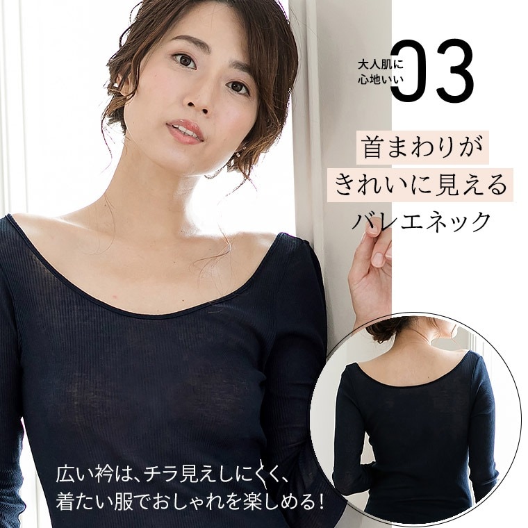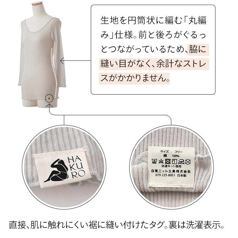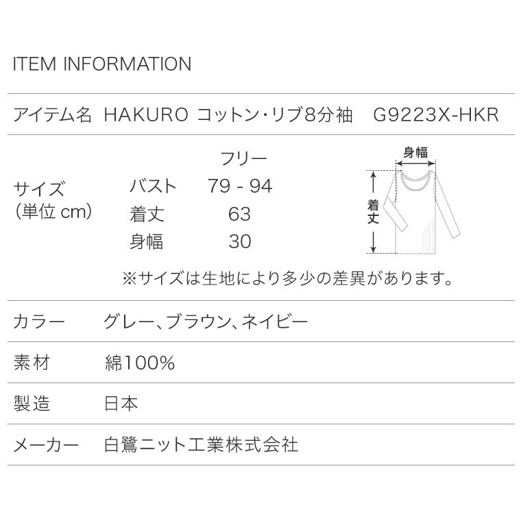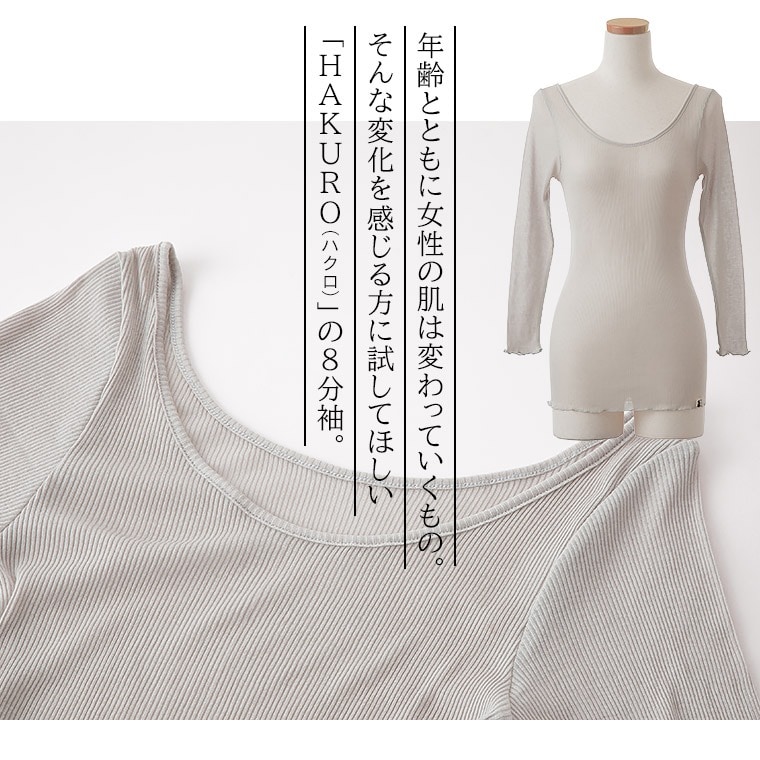 レディース インナー シャツ 長袖 HAKURO 日本製 綿100% 8分袖 コットン リブ 日本製 年間 バレエネック 肌着 下着 G9223X-HKR