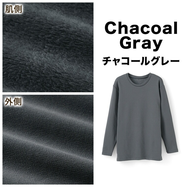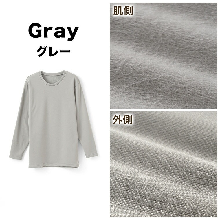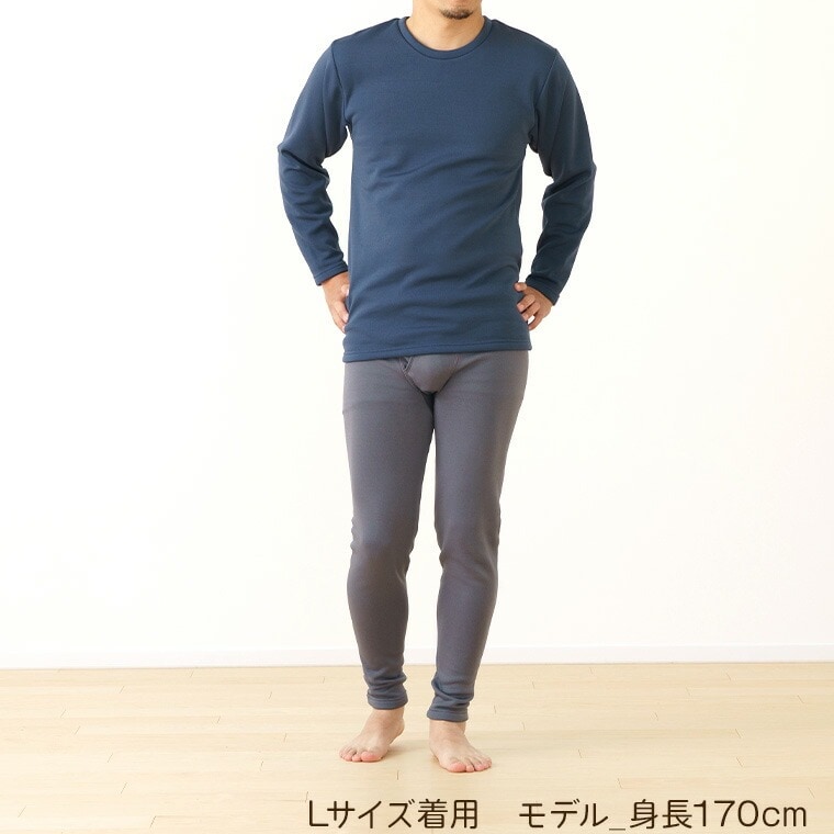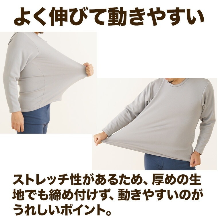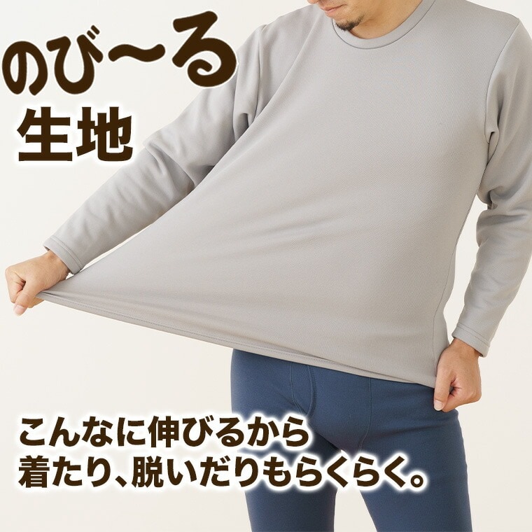 メンズ インナー シャツ 長袖 のびる裏ボア 丸首 ストレッチ 秋冬 ルームウェア 部屋着 紳士 下着 肌着 K0960C-E 防寒