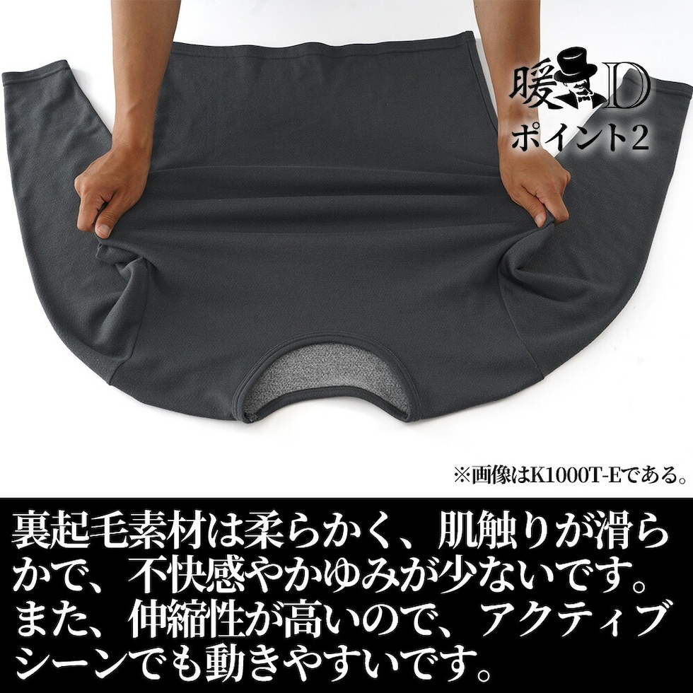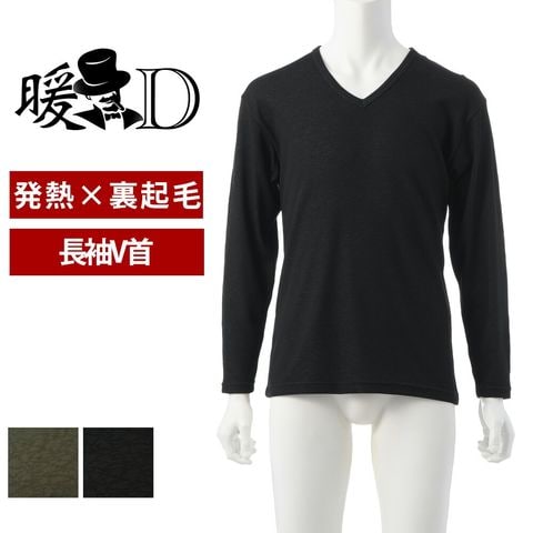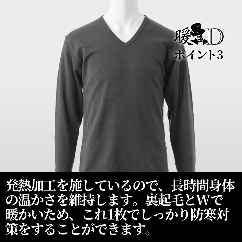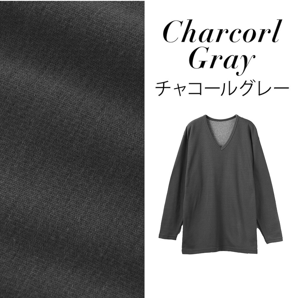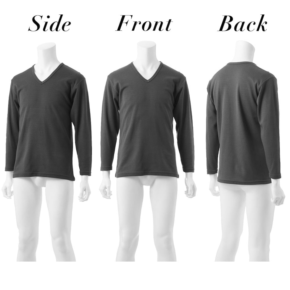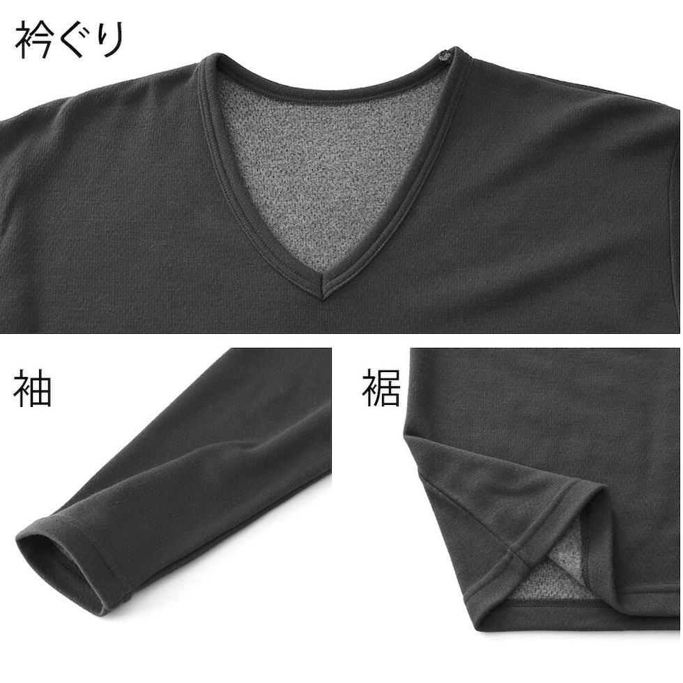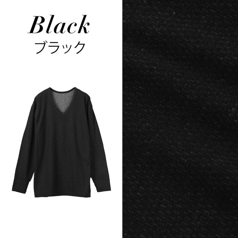 メンズ インナー 発熱 裏起毛 長袖V首シャツ 秋冬 あったか ストレッチ 防寒 アンダーウェア 肌着 男性 紳士 ブラック/チャコールグレー M/L/LL K1001T-E