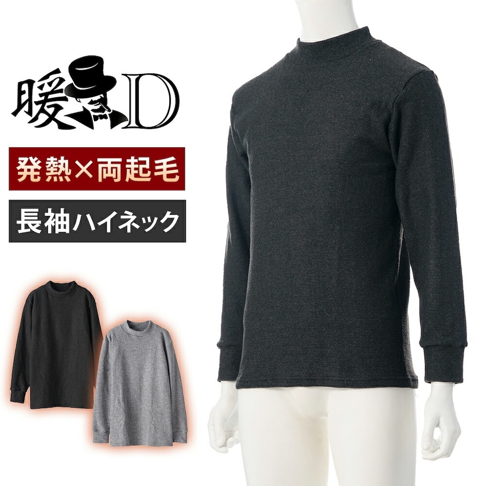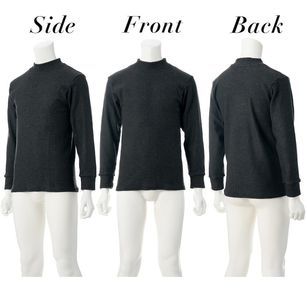 メンズ インナー 発熱 袋編 両起毛 ハイネックシャツ 秋冬 あったか ストレッチ 防寒 アンダーウェア モックネック 下着 保温 肌着 男性 紳士 ブラック/グレー M/L/LL K1011T-E