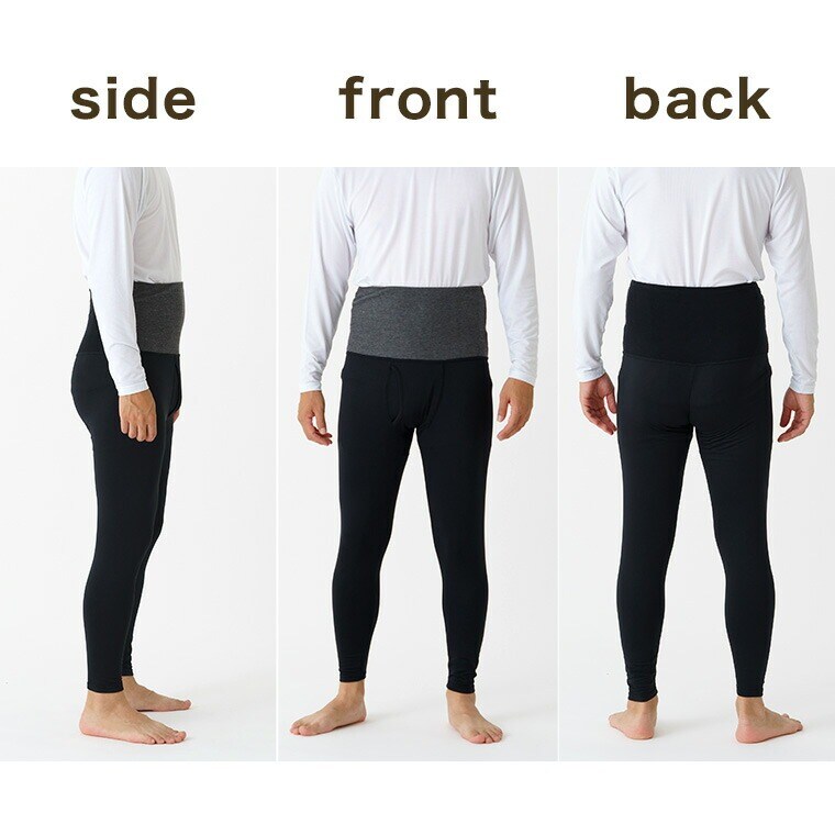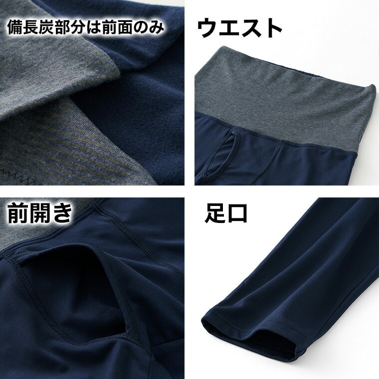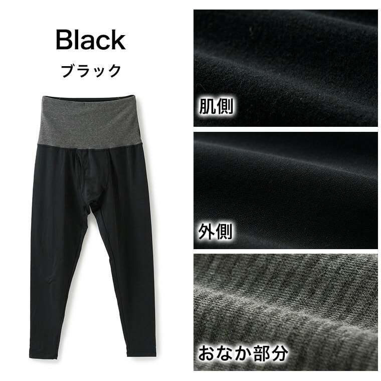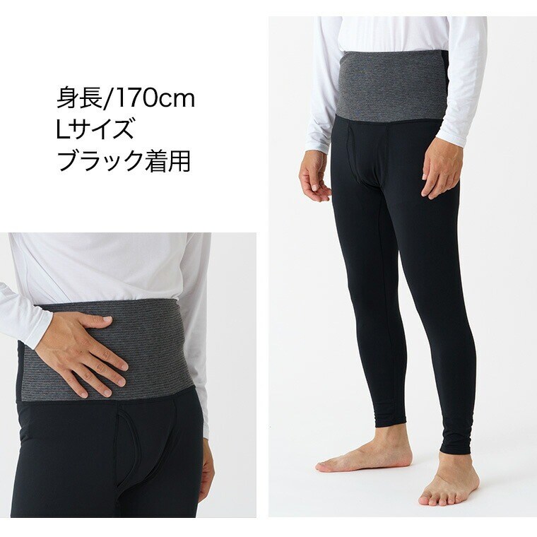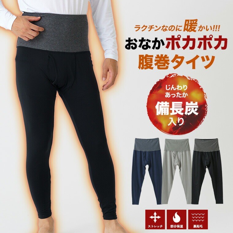 メンズ インナー 腹巻付きインナー 備長炭繊維入り ズボン下 スパッツ タイツ 前あき 前開き 裏起毛 秋冬 はらまき 暖かい保温 防寒 ストレッチ 男性 紳士 下着 肌着 24AW グレー/ブラック/ネイビー M/L/LL K1105P-E