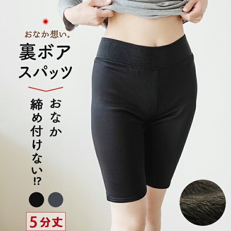 レディース おなか想い 5分丈 裏ボア スパッツ ボトムス 秋冬 あったか オーバーパンツ レギンス 締め付けない 食い込まない ゴム無し 防寒 お腹 対策 暖かい 深ばき 深履き おなか想い K5716K-R