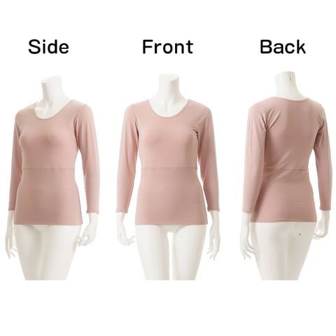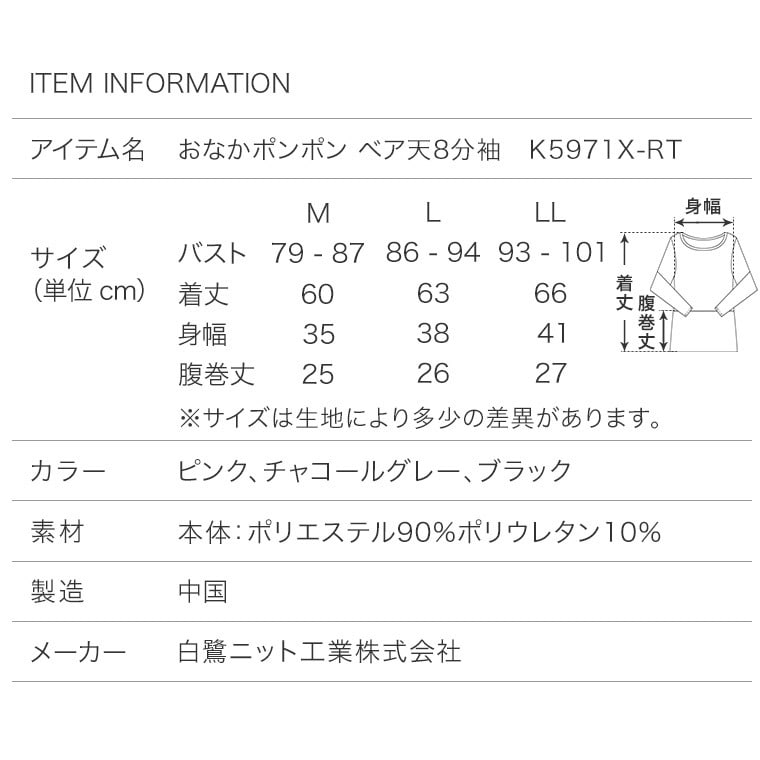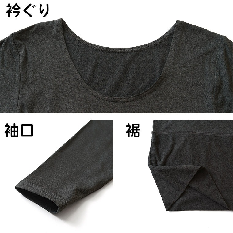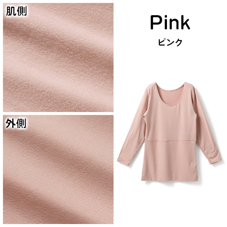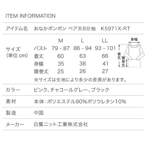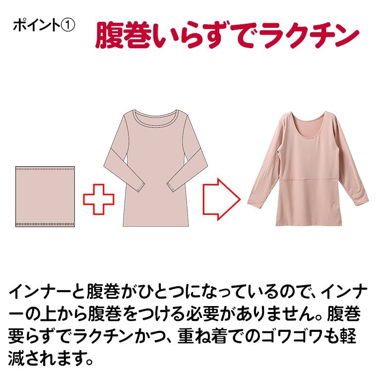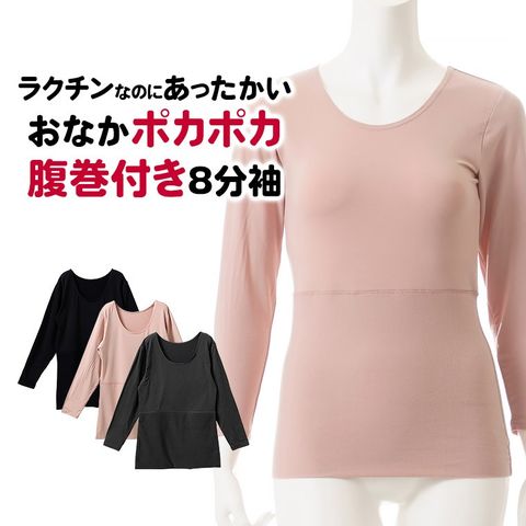 レディース インナー シャツ おなかポンポン 裏起毛 8分袖 秋冬 肌着 婦人 女性 お腹生地二重 腹巻付き あったか 重ね着 ピンク/ブラック/チャコールグレー M/L/LL K5971X-R 防寒