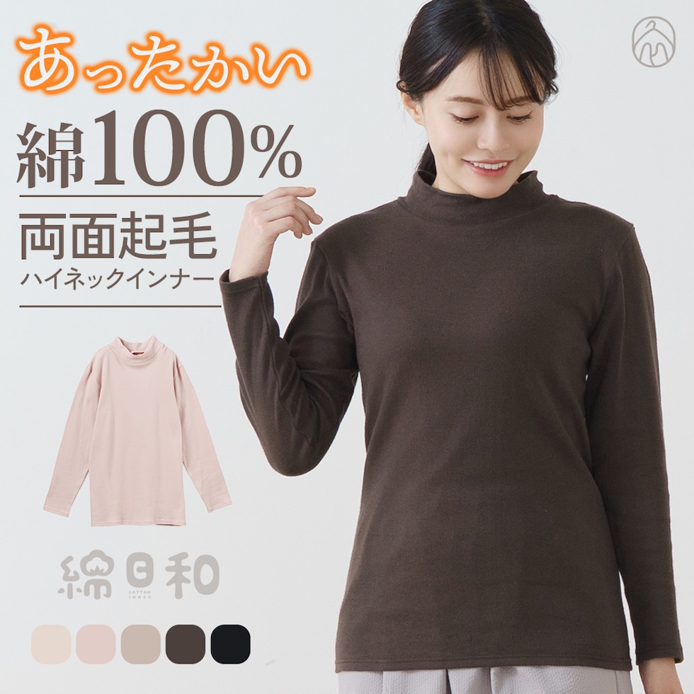 レディース インナー シャツ 長袖 両面起毛 綿100% ハイネック あったか 温か 綿 コットン cotton 秋冬 エイトロック編み 肌着 婦人 グレー/ベージュ/ピンク M/L/LL K6461T-E 防寒