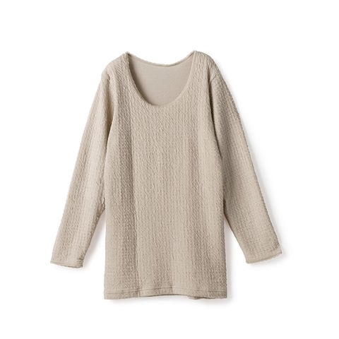 レディース インナー シャツ 長袖 あったか 保温 8分袖 袋編み 秋冬 防寒 暖かい あたたかい 保温 無地 レース 薄手 ストレッチ ウエーブ 冬用 女性 婦人 下着 肌着 ベージュ/ピンク/パープル M/L/LL K6491T-E