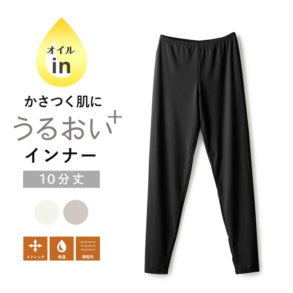 アルガンオイル加工 保湿 10分丈 表起毛 秋冬 ボトム 暖かい 保温 ストレッチ 女性 婦人 下着 肌着 24AW オフホワイト / グレー / ブラック M/L/LL K6535T-E 防寒