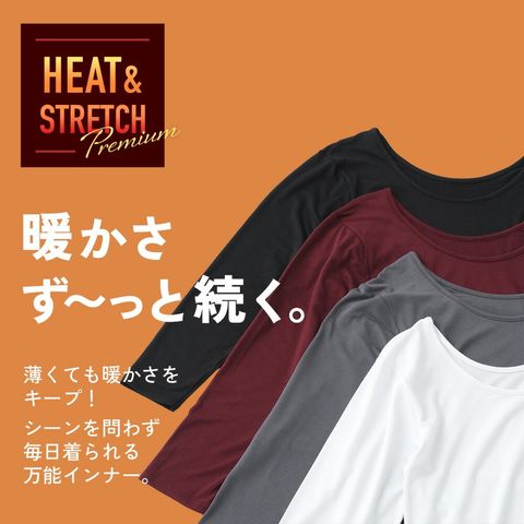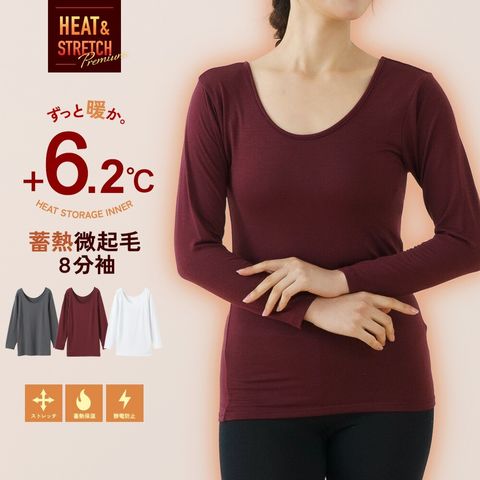 レディース インナー HEAT&STRETCH Premium +6.2℃ 蓄熱 機能インナー 静電防止 蓄熱保温 ストレッチ +6.2℃ 暖か 薄い 裏起毛 動きやすい 8分袖 秋冬 婦人 女性 下着 肌着 24AW ヒートテック K6630P-E 防寒