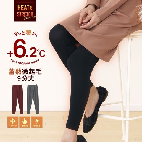 レディース HEAT&STRETCH Premium +6.2℃ 蓄熱 機能インナー 静電防止 蓄熱保温 ストレッチ 暖か あったか 薄い 裏起毛 動きやすい 9分丈ボトム 秋冬 婦人 女性 下着 肌着 24AW ヒートテック K6635P-E 防寒