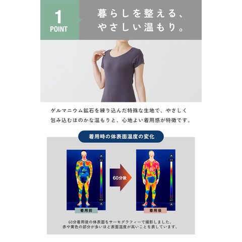ヘルスケア インナー 半袖 シャツ 疲労回復 下着 インナーウェア 血行促進 遠赤外線 疲労軽減 ボディケア 健康 プレゼント ギフト ヘルスケア フレンチ 一般医療機器 レディース 女性 婦人 マイナスイオン ゲルマニウム 25AW K6722L-E