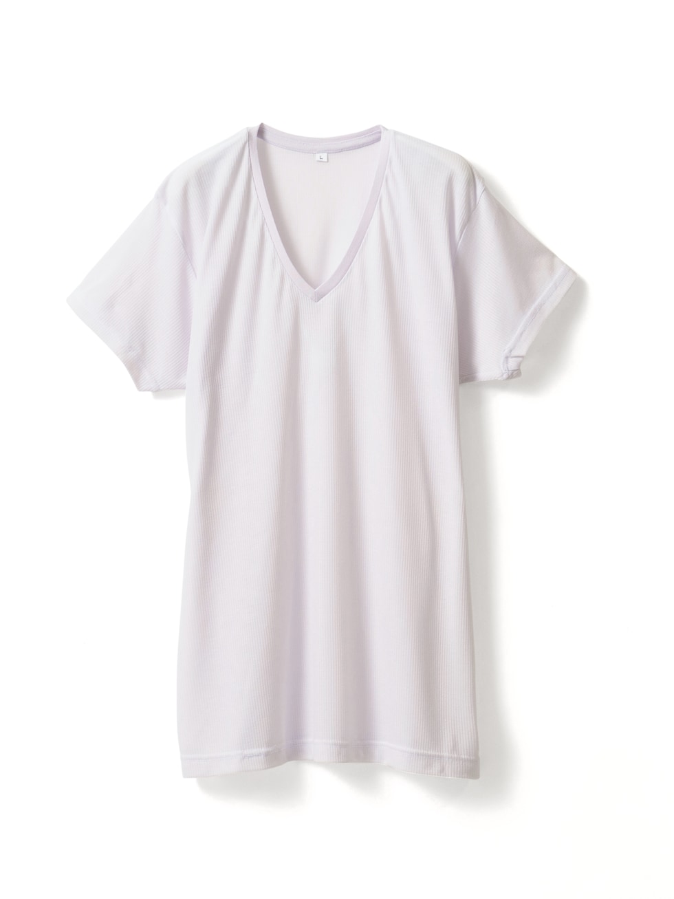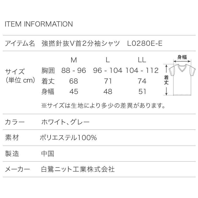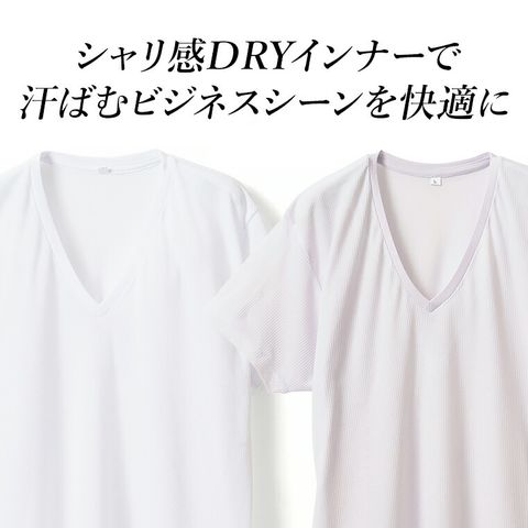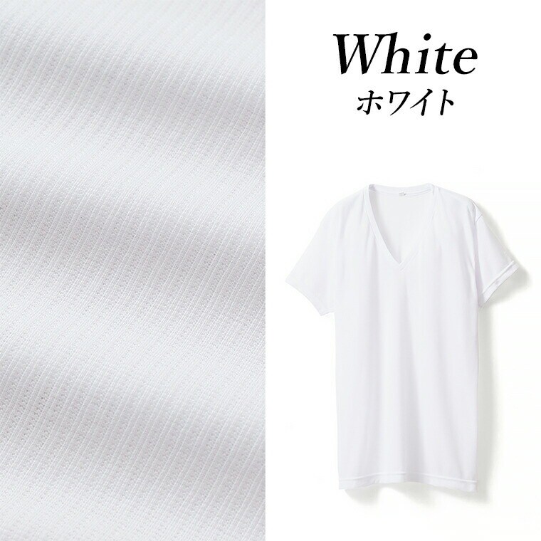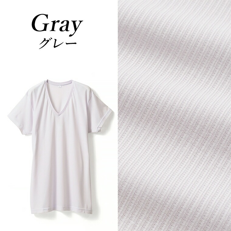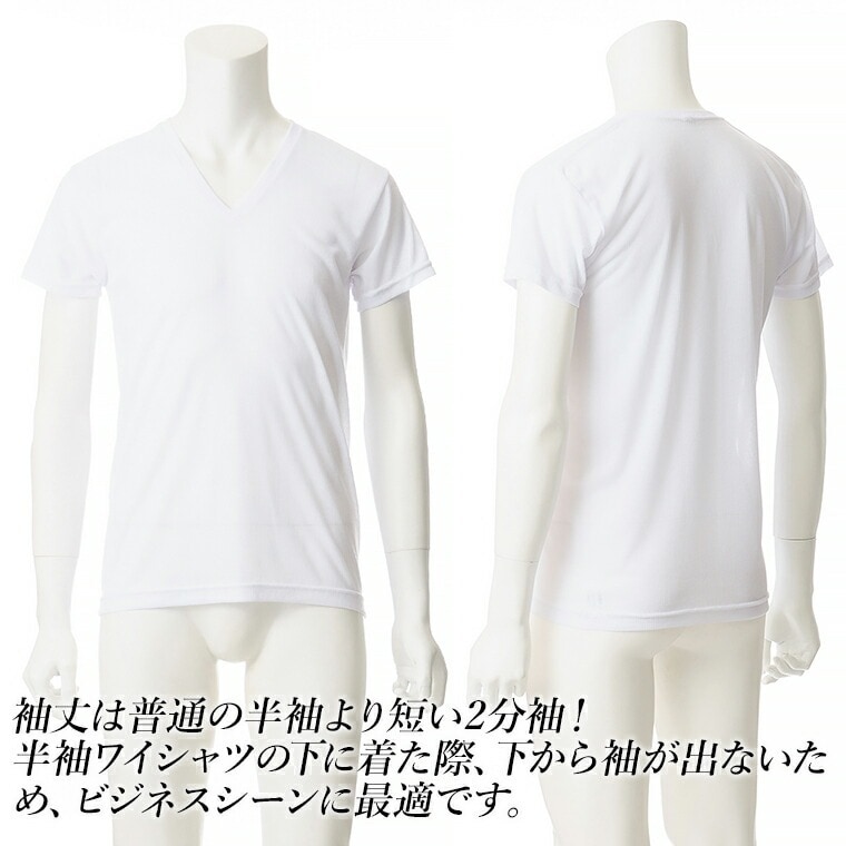 メンズ インナー 半袖 快適 DRY 2分袖 春夏 トップス ドライ 吸汗速乾 V首 Vネック 男性 肌着 紳士 下着 ホワイト/グレー M/L/LL L0280E-E 涼しい