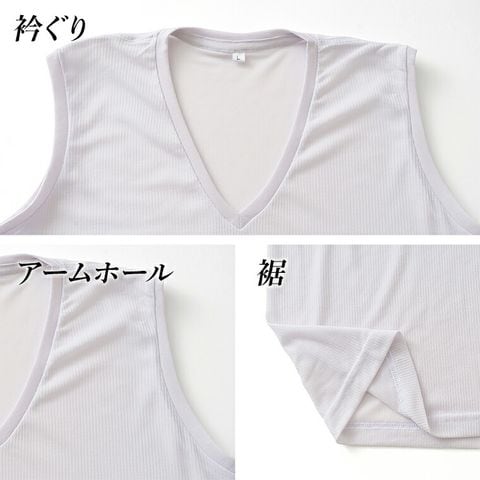 【スペック】 アイテム名:強撚針抜V首サーフ L0281E-E サイズ: M / L / LL 胸囲: 88-96 / 96-104 / 104-112 着丈: 68 / 71 / 74 身幅: 45 / 48 / 51 ※サイズは生地により多少の差異があります。 素材:(本体) ポリエステル100% 製造:中国 快適 DRY インナー メンズ 春夏 トップス ドライ 吸汗速乾 サーフ V首 Vネック 男性 ノースリーブ 肌着 紳士 下着 ホワイト/グレー M/L/LL L0281E-E