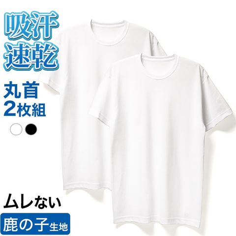 メンズ インナー 半袖 ルクール鹿の子 丸首 Tシャツ 2枚 セット 春夏 肌着 下着 消臭 吸汗 速乾 紳士 男性 綿混 クルーネック 父の日 new ホワイト/ブラック M/L/LL L0600E-E 涼しい