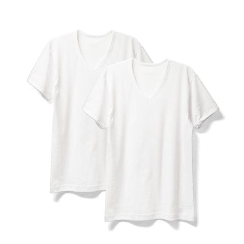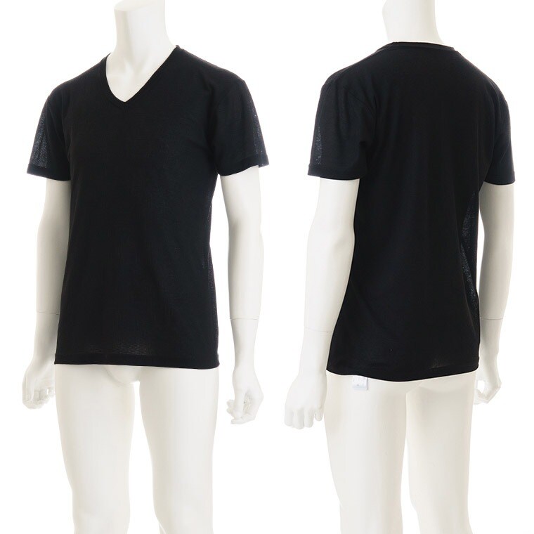 メンズ インナー 半袖 ルクール鹿の子 V首 インナーシャツ 2枚 セットでお得!! 春夏 肌着 下着 消臭 吸汗 速乾 紳士 男性 綿混 Vネック 父の日 new ホワイト/ブラック M/L/LL L0601E-E 涼しい