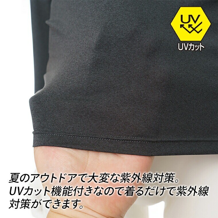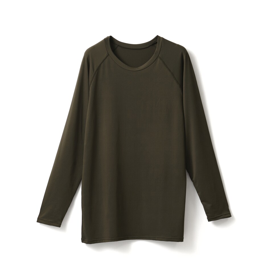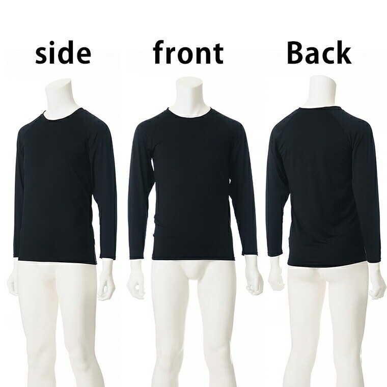 【スペック】 アイテム名:ベア天UV防虫加工長袖丸首 L1010T-E サイズ: M / L / LL 胸囲: 88-96 / 96-104 / 104-112 着丈: 65 / 68 / 71 身幅: 42 / 45 / 48 ※サイズは生地により多少の差異があります。 素材:(本体) ポリエステル90%ポリウレタン10% 製造:中国 丸首 ラグラン 長袖 インナー メンズ 春夏 防虫 UVカット 通気性 ストレッチ アンダーウェア 男性 紳士 カジュアル スポーツ チャコールグレー/ダークグリーン/ブラック M/L/LL L1010T-E