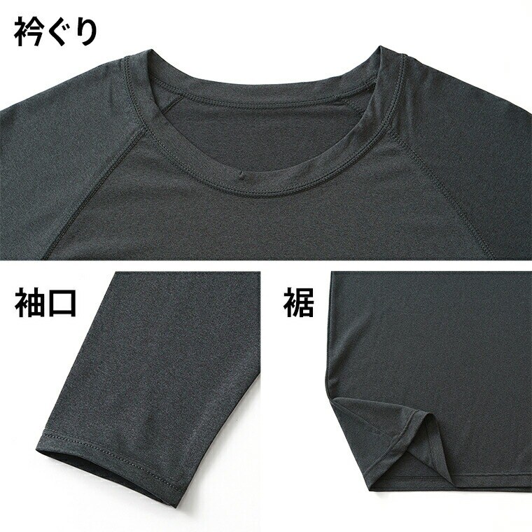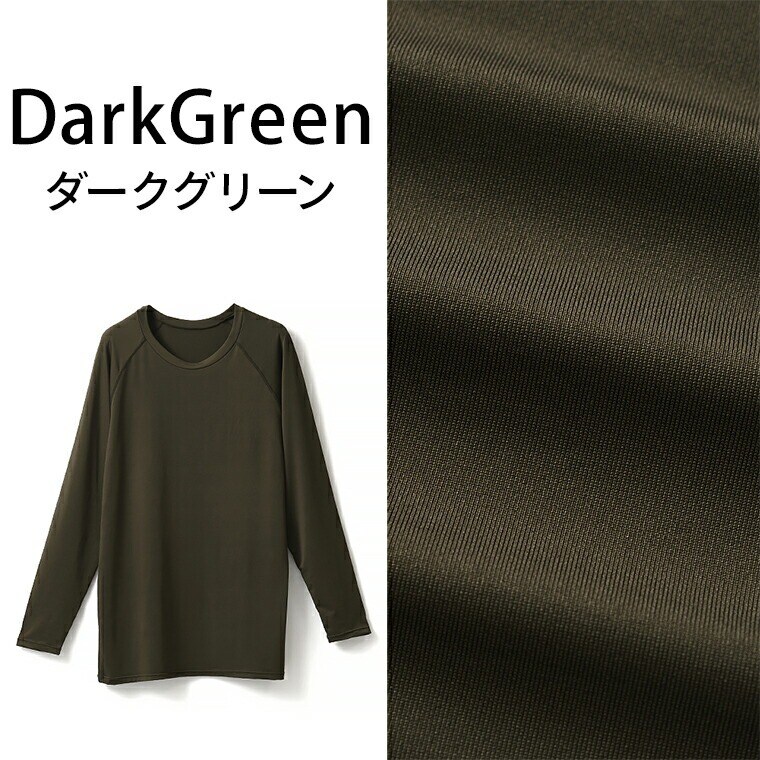 メンズ インナー 長袖 丸首 ラグラン 春夏 防虫 UVカット 通気性 ストレッチ アンダーウェア 男性 紳士 カジュアル スポーツ キャンプ アウトドア new チャコールグレー/ダークグリーン/ブラック M/L/LL L1010T-E 涼しい 肌着