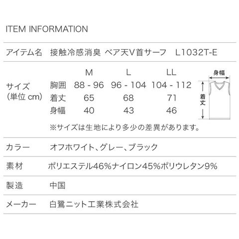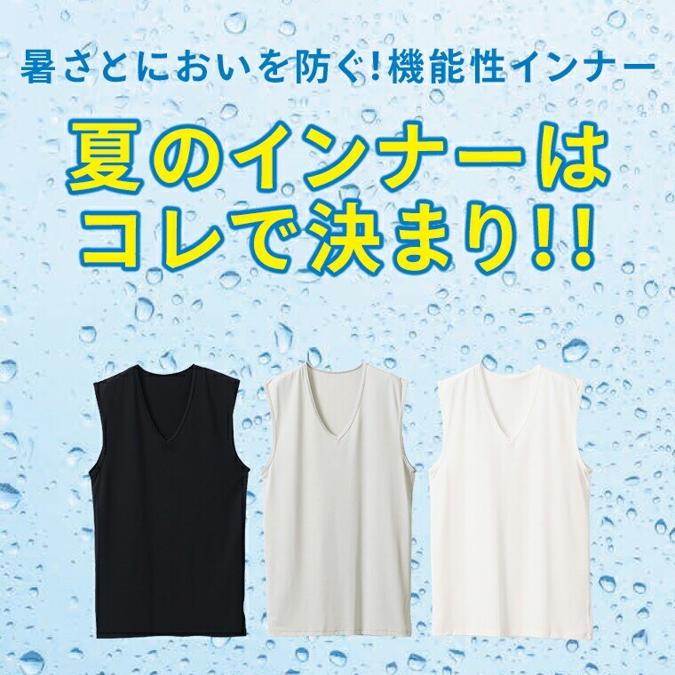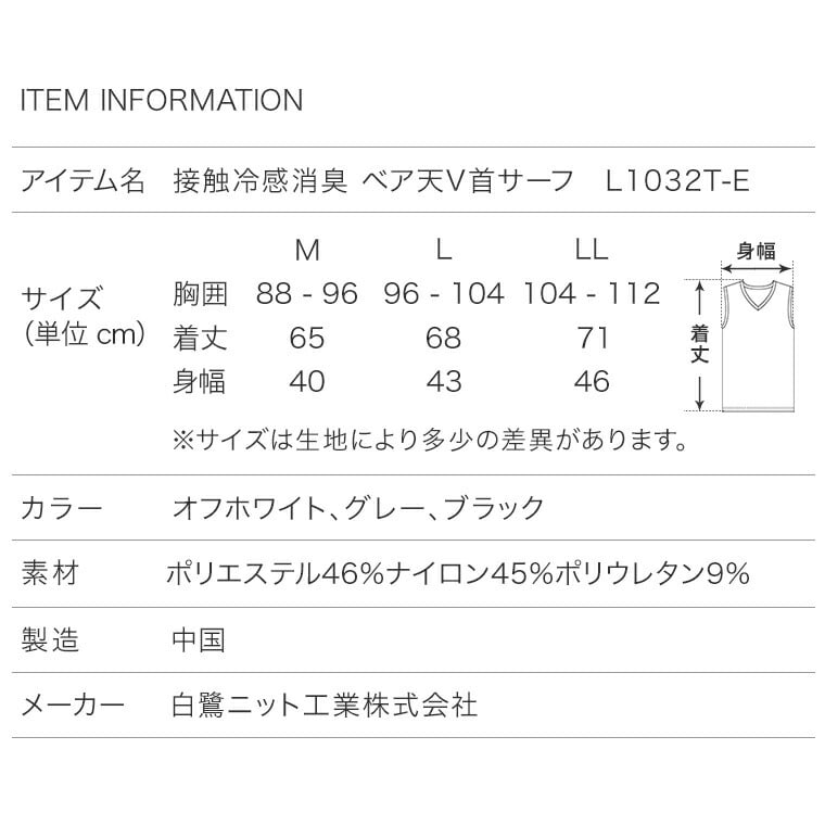 メンズ インナー シャツ 接触冷感 消臭加工 ストレッチ サーフ V首 Vネック 春夏 ひんやり 肌着 紳士 男性 new オフホワイト/グレー/ブラック M/L/LL L1032T-E 涼しい