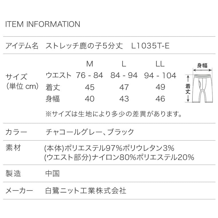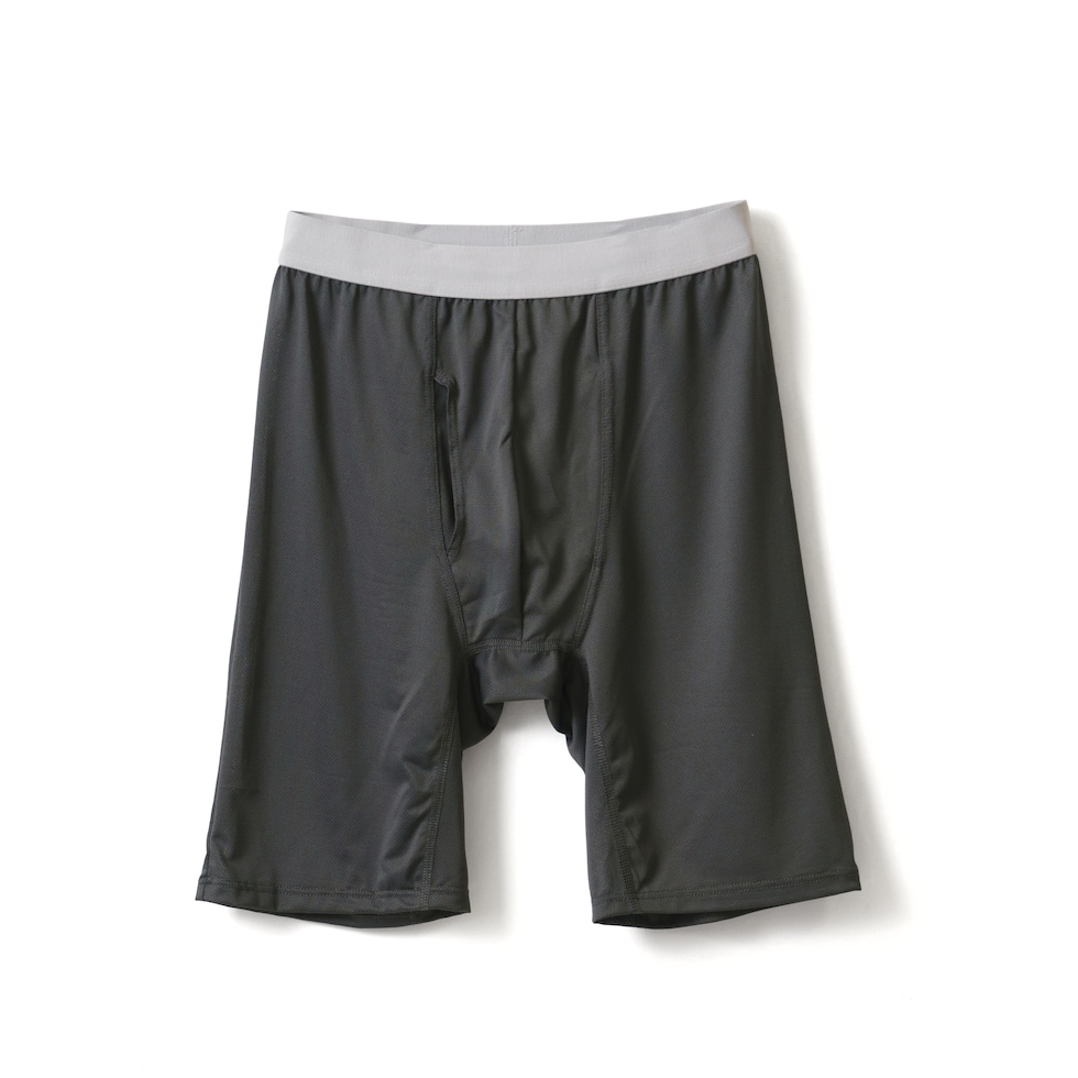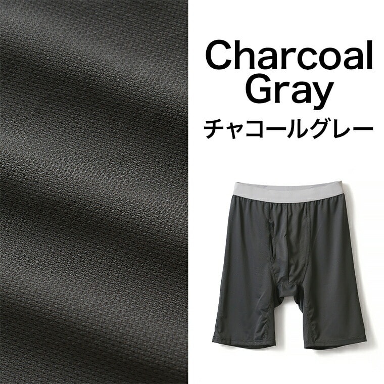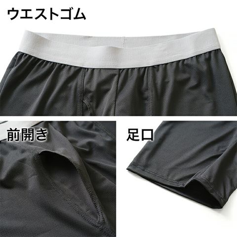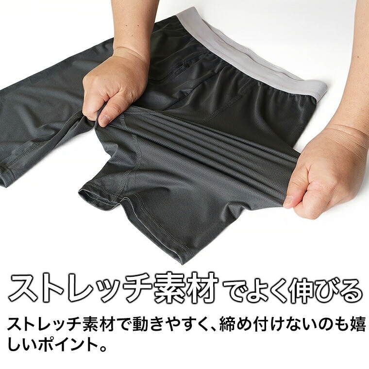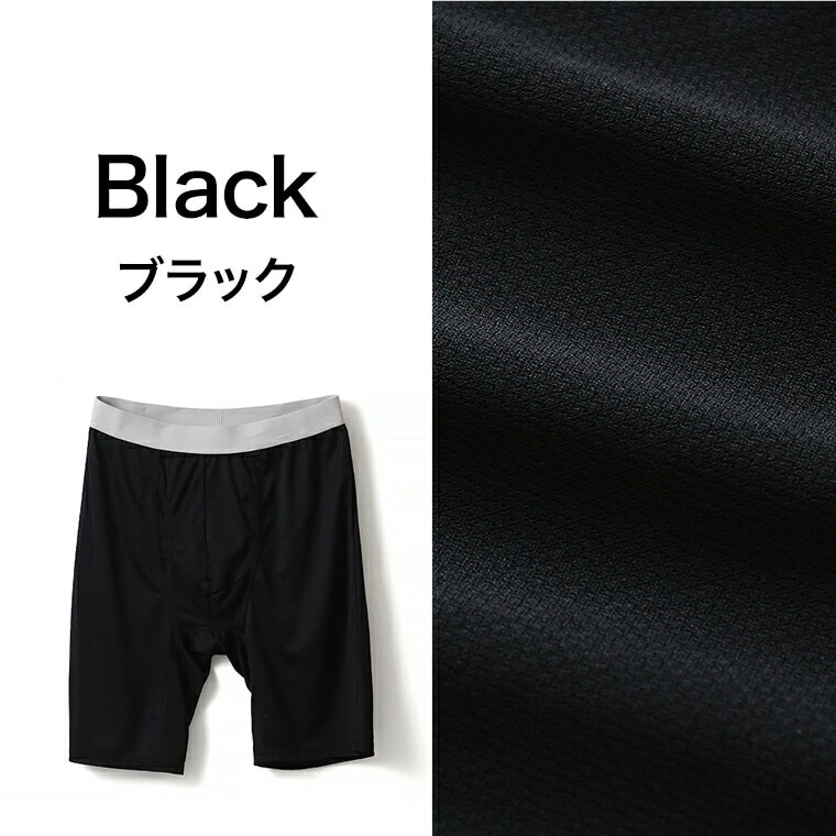 メンズ 直ばき ロングパンツ 春夏 ボトムス インナーパンツ 5分丈 膝上丈 ボクサー ストレッチ 鹿の子 薄手 ドライ 吸汗速乾 男性 肌着 紳士 下着 new ブラック/チャコールグレー M/L/LL L1035T-E 涼しい