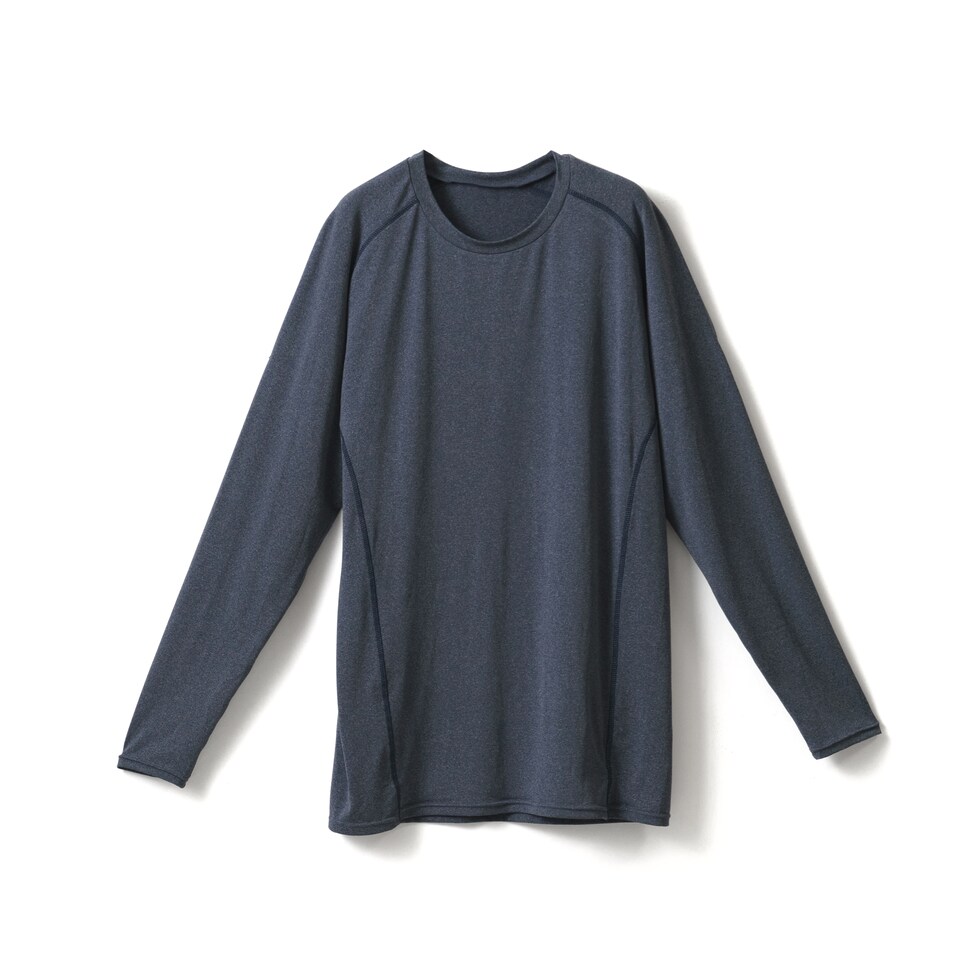 メンズ インナー シャツ 長袖 スポーツ ウェア 年間 ストレッチ 丸首 ドライ 吸汗速乾 肌着 紳士 男性 new グレー/チャコールグレー/ネイビー M/L/LL L1061T-E