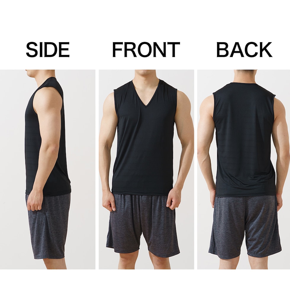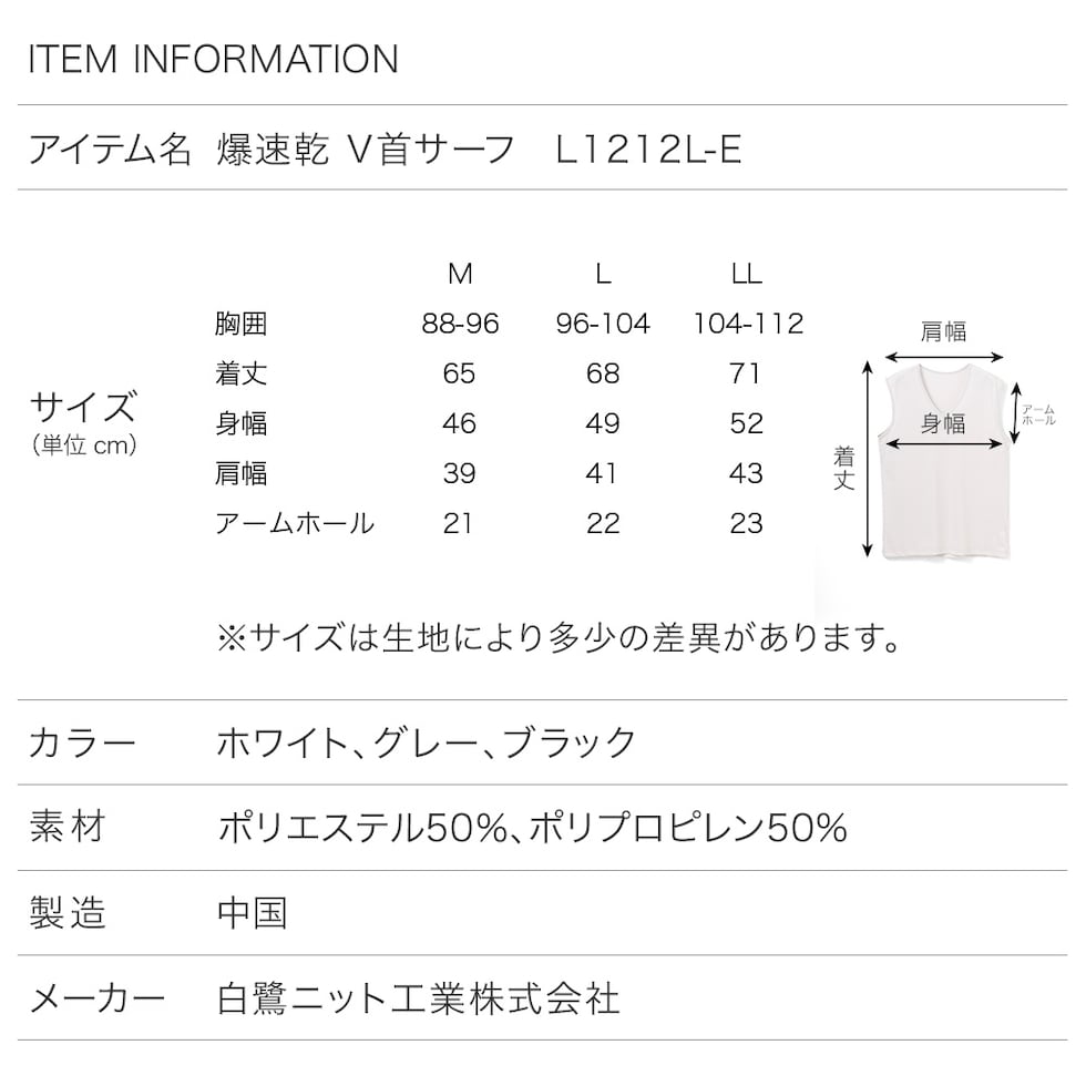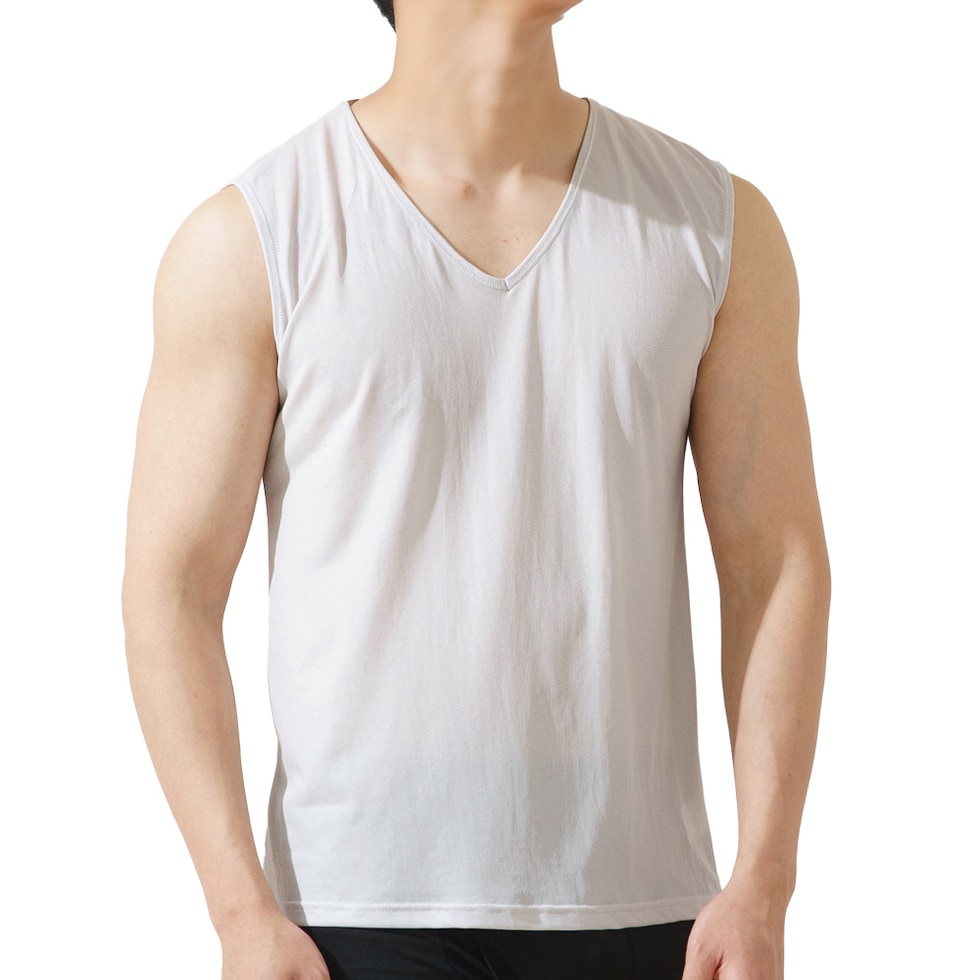 メンズ インナー シャツ 超爆速乾 メッシュ サーフ Vネック ノースリーブ 春夏 ドライ 吸汗速乾 軽量 V首 トップス 肌着 紳士 男性 ホワイト/グレー/ブラック M/L/LL L1212L-E 涼しい