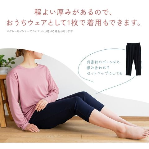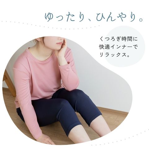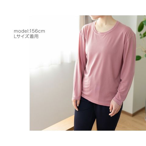 レディース インナー 長袖 リラックス 冷感 丸首 春夏 ひんやり 持続冷感 ルームインナー ルームウェア 部屋着 女性 肌着 婦人 下着 ピンク/グレー/ネイビー M/L/LL L5981E-R 涼しいのレビュー