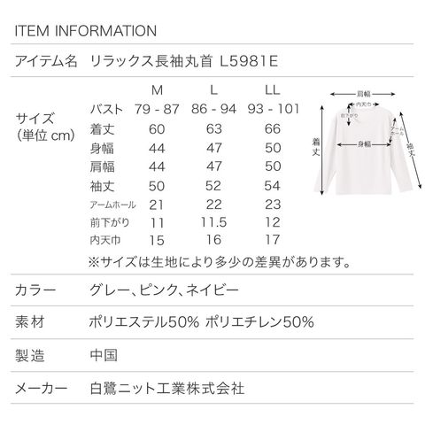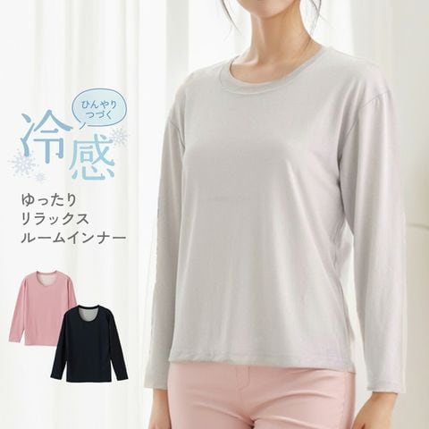 レディース インナー 長袖 リラックス 冷感 丸首 春夏 ひんやり 持続冷感 ルームインナー ルームウェア 部屋着 女性 肌着 婦人 下着 ピンク/グレー/ネイビー M/L/LL L5981E-R 涼しい