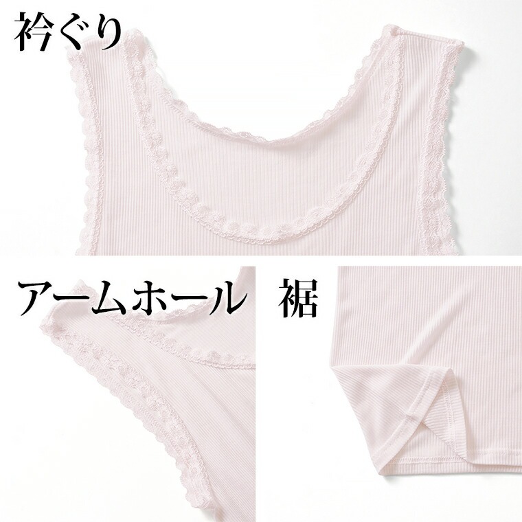 レディース シルク入り インナーシャツ タンクトップ 春夏 レース付き タンク ノースリーブ サラサラ 肌ざわり なめらか new ベージュ/ピンク/ライトブルー M/L/LL L6320T-E 涼しい 肌着