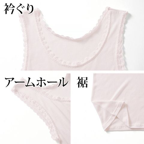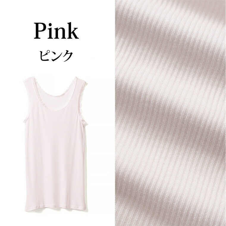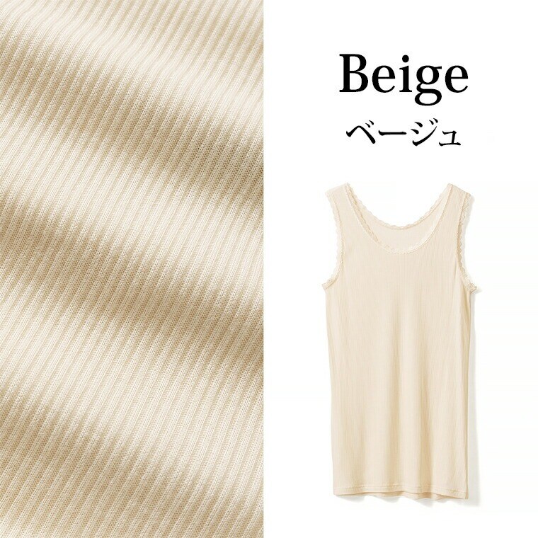 レディース シルク入り インナーシャツ タンクトップ 春夏 レース付き タンク ノースリーブ サラサラ 肌ざわり なめらか new ベージュ/ピンク/ライトブルー M/L/LL L6320T-E 涼しい 肌着のレビュー
