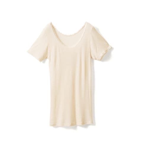 レディース 半袖 シルク入り インナーシャツ 3分袖 春夏 レース付き フレンチ袖 サラサラ 肌ざわり なめらか new ベージュ/ピンク/ライトブルー M/L/LL L6321T-E 涼しい 肌着