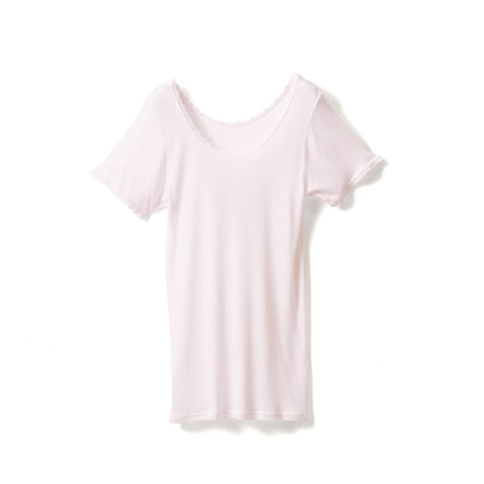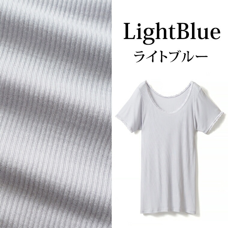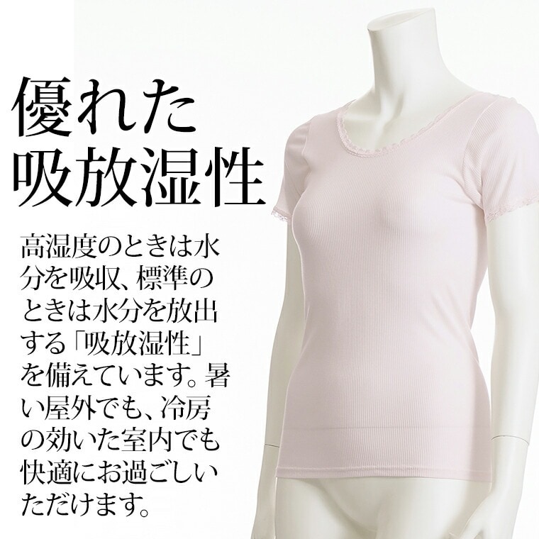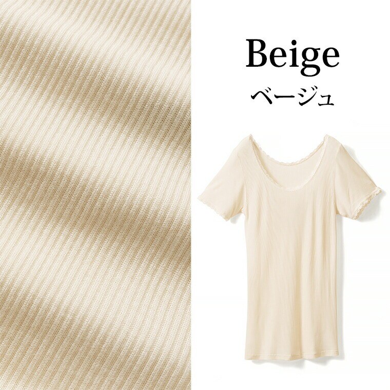 レディース 半袖 シルク入り インナーシャツ 3分袖 春夏 レース付き フレンチ袖 サラサラ 肌ざわり なめらか new ベージュ/ピンク/ライトブルー M/L/LL L6321T-E 涼しい 肌着