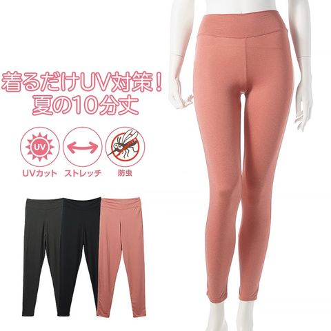 レディース インナー 10分丈 春夏 UVカット 通気性 アウトドア アンダーウェア ボトムス ストレッチ カジュアル スポーツ キャンプ 防虫 女性 婦人 下着 肌着 new ピンク/チャコールグレー/ブラック M/L/LL L6345T-E 涼しい