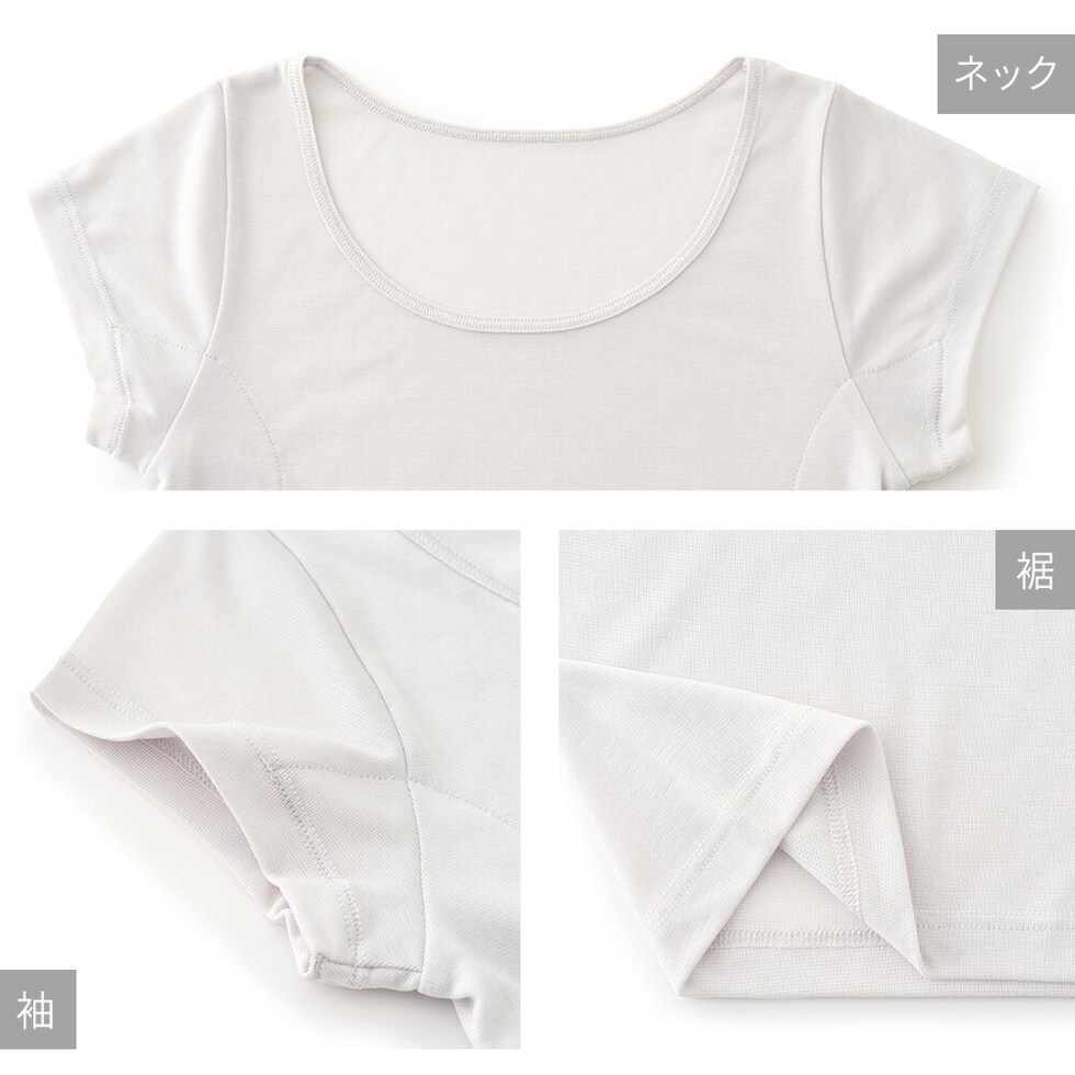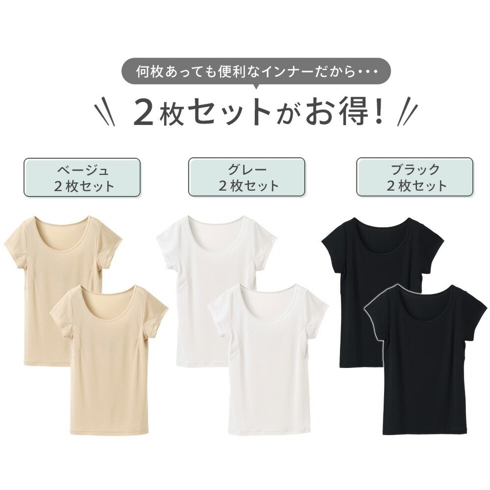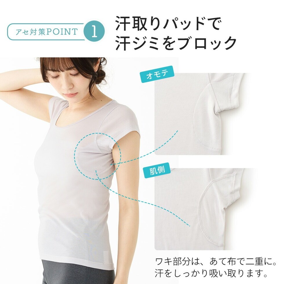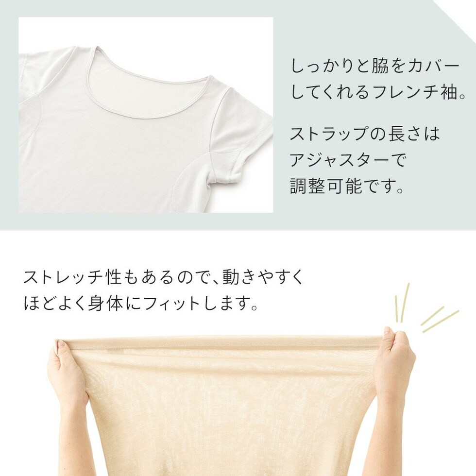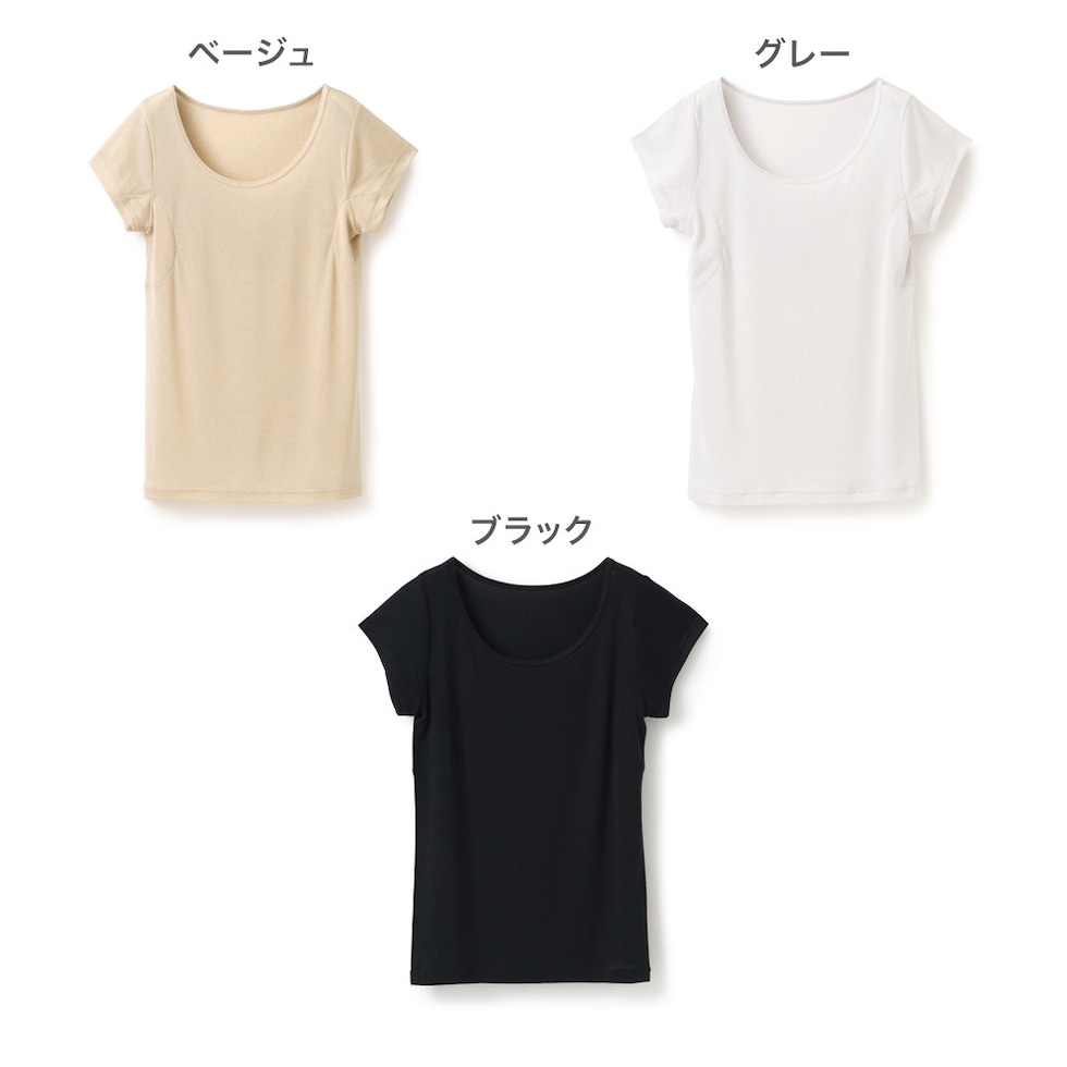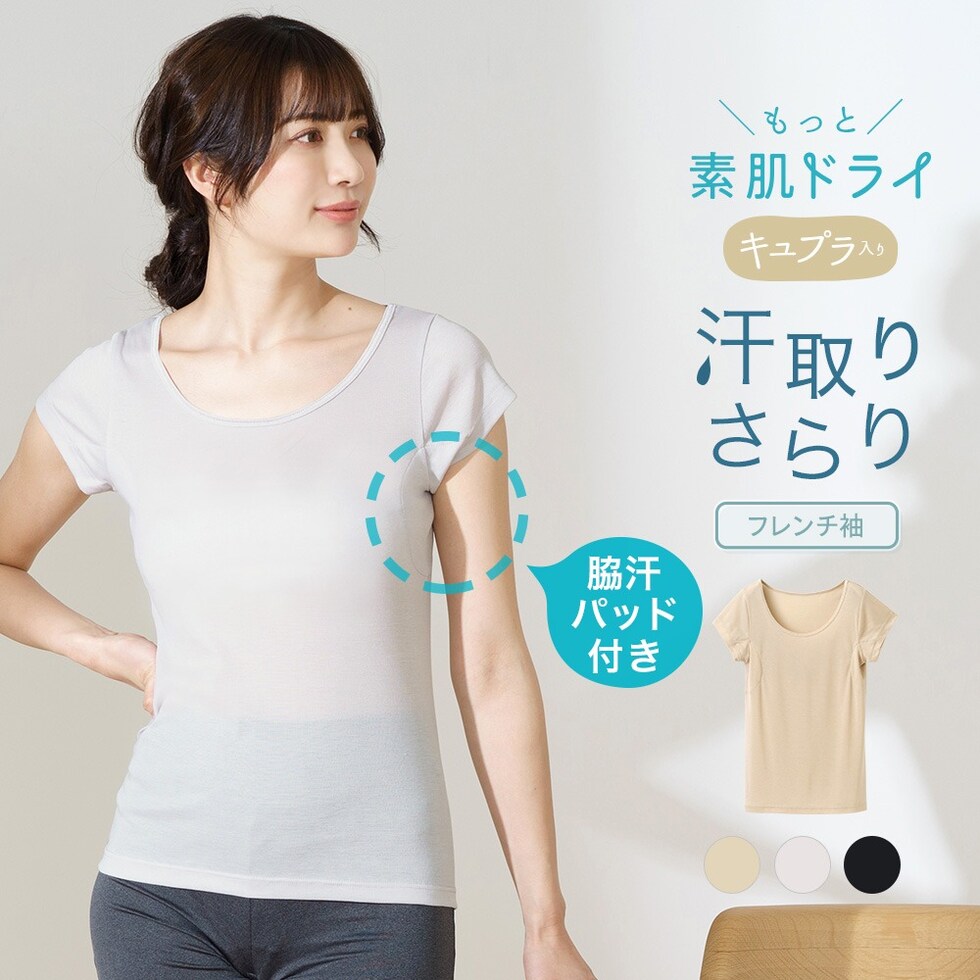 レディース インナー 半袖 素肌ドライ 汗取り キュプラ入り フレンチ袖 セットでお得!! 脇汗 汗取り パッド付き 春夏 汗染み 防止 汗 対策 綿 汗とり パット付き 吸汗速乾 24SS L6412P-E 涼しい 肌着