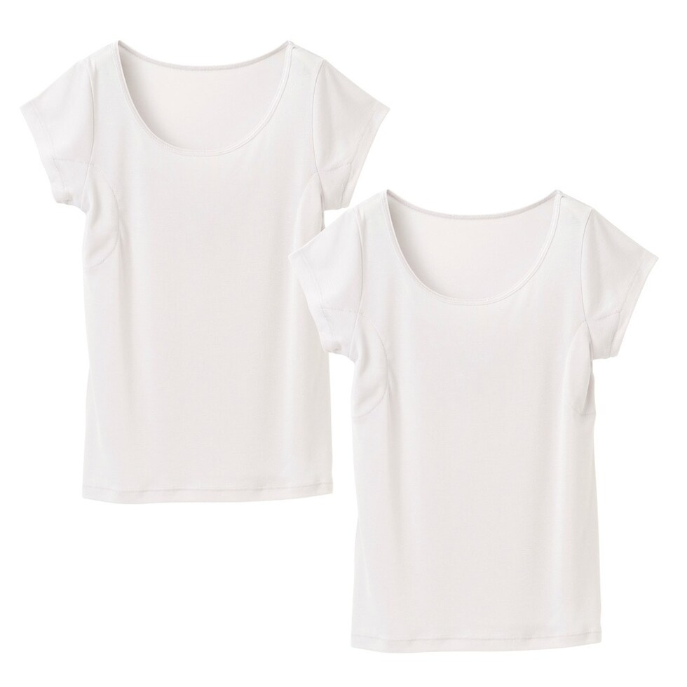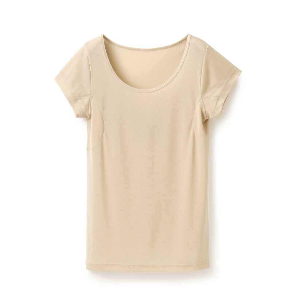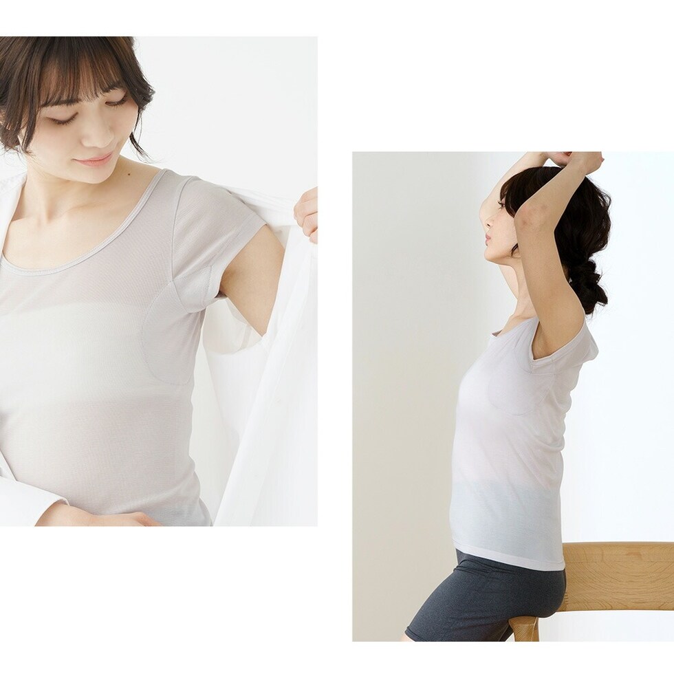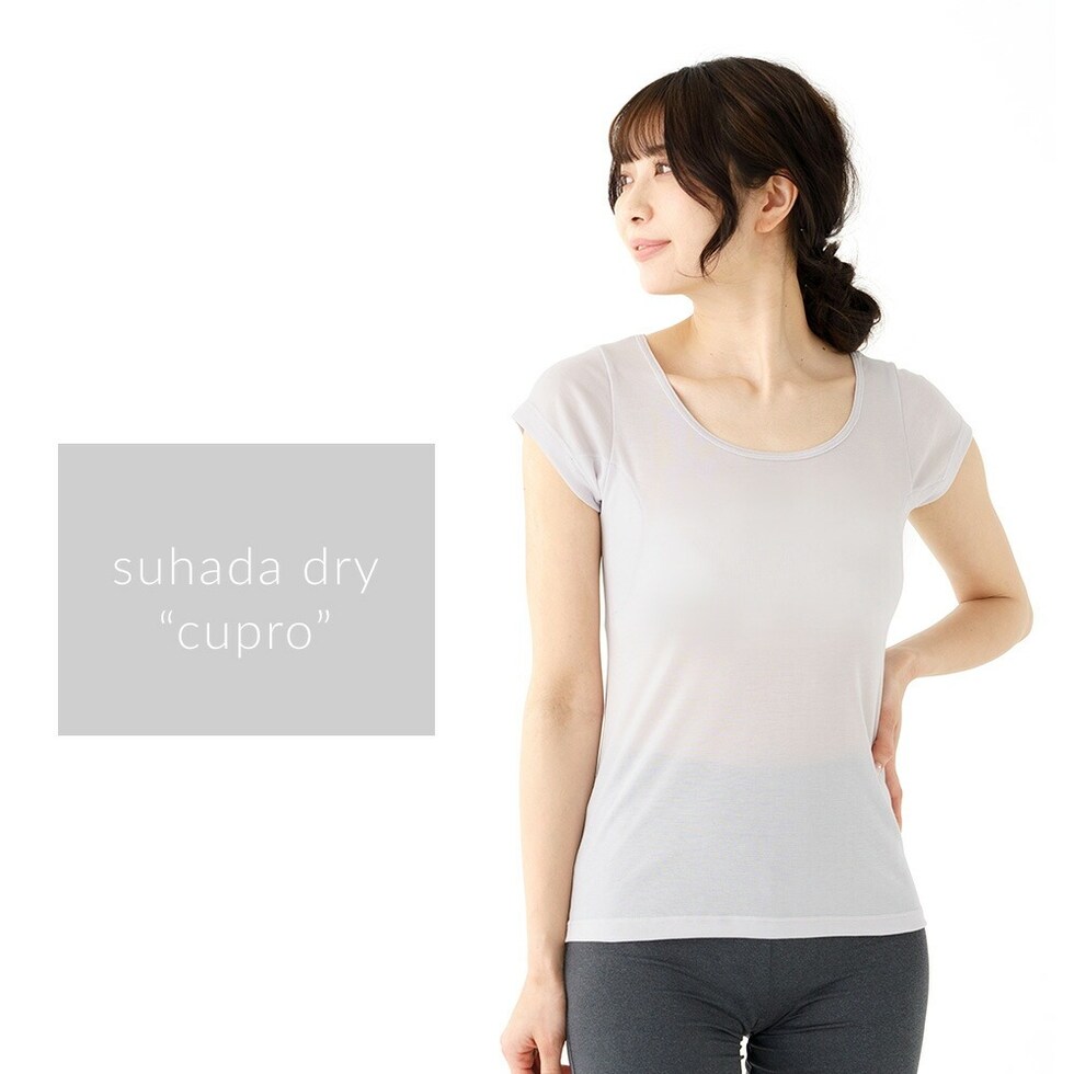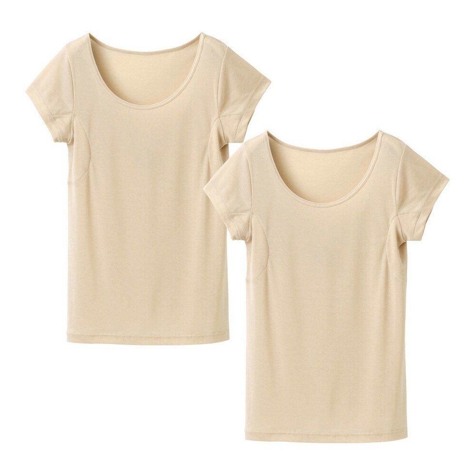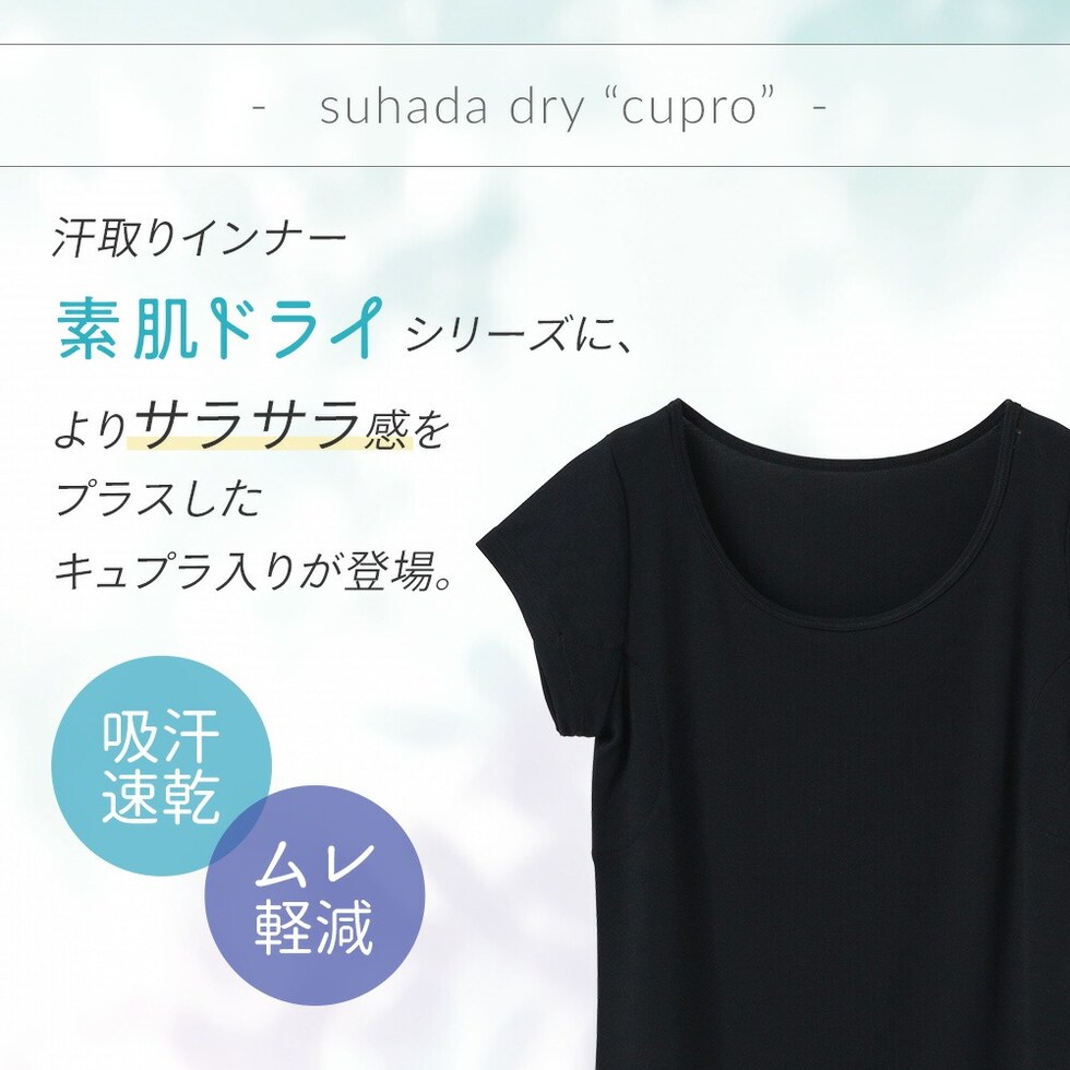 レディース インナー 半袖 素肌ドライ 汗取り キュプラ入り フレンチ袖 セットでお得!! 脇汗 汗取り パッド付き 春夏 汗染み 防止 汗 対策 綿 汗とり パット付き 吸汗速乾 24SS L6412P-E 涼しい 肌着