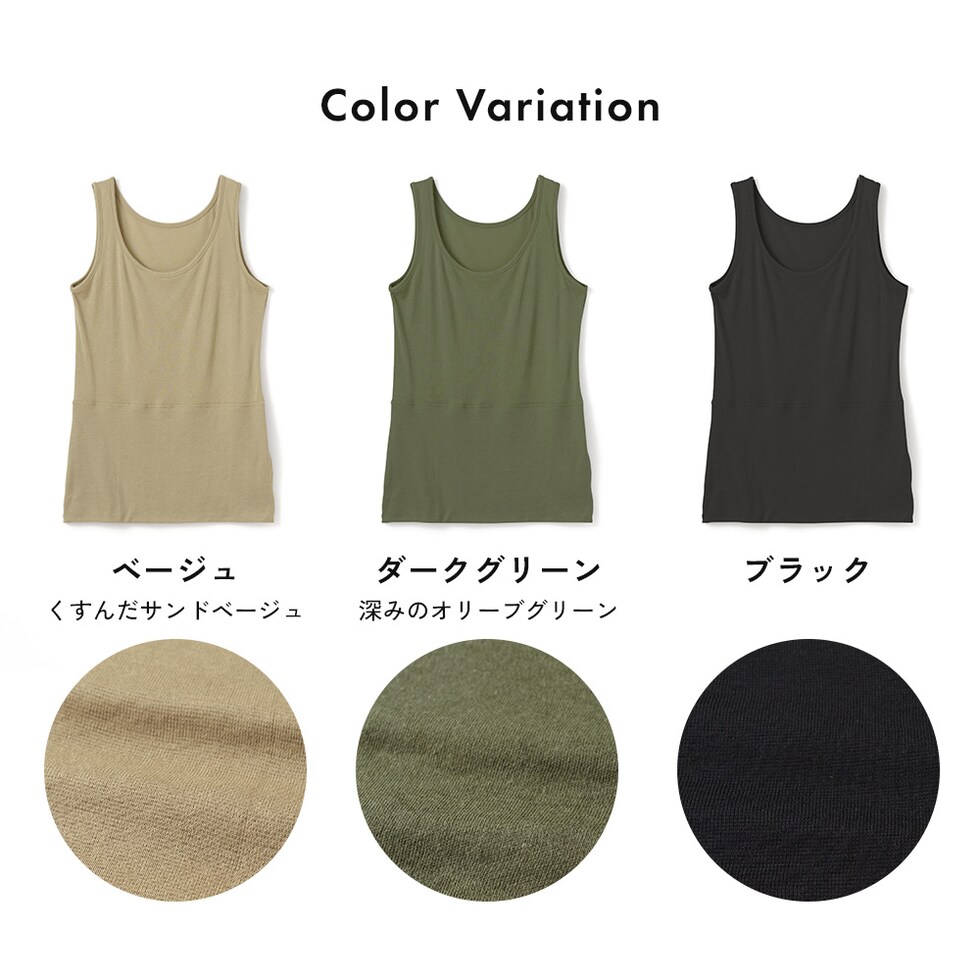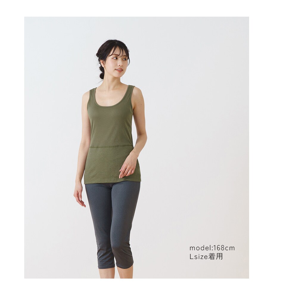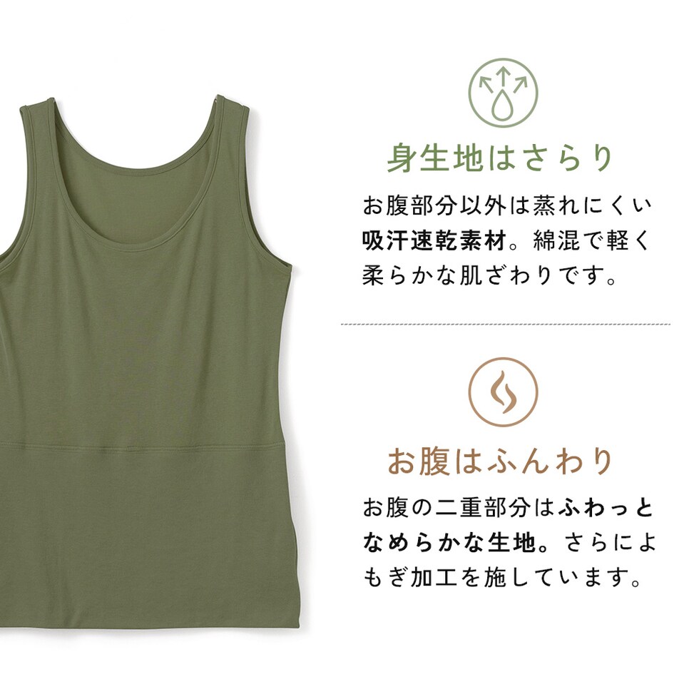 レディース インナー おなか想い よもぎ加工 タンクトップ ボタニカル お腹 暖か 保温 冷房対策 冷え防止 吸汗速乾 春夏 婦人 女性 下着 肌着 25SS L6501L-E 涼しい