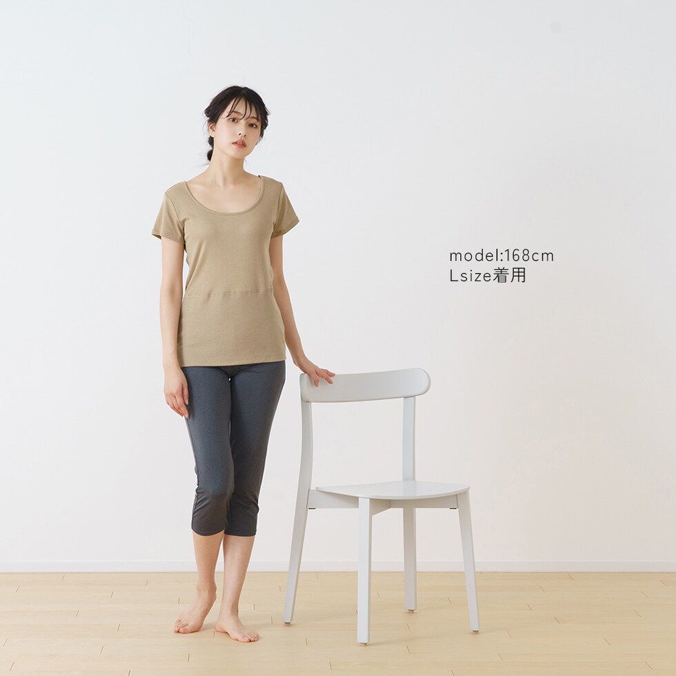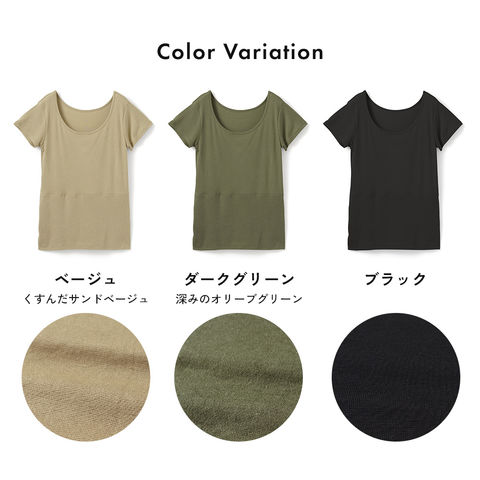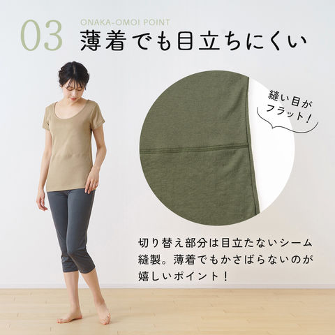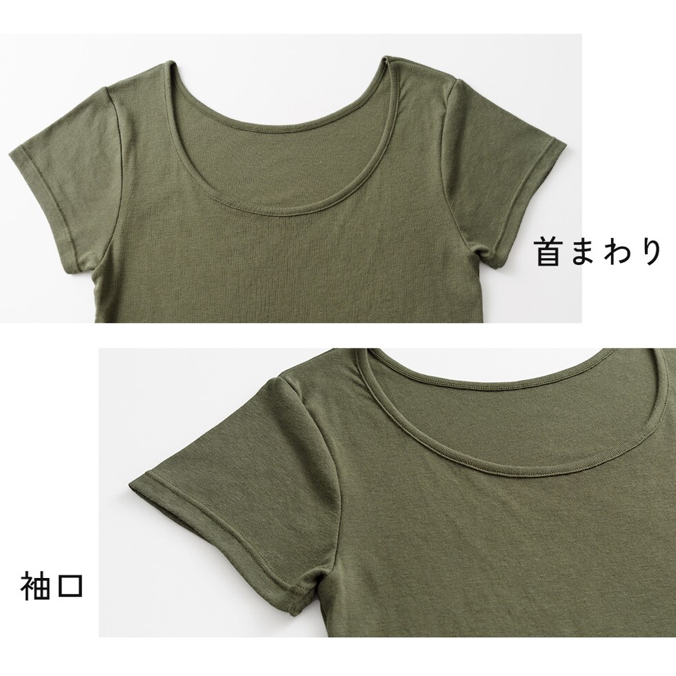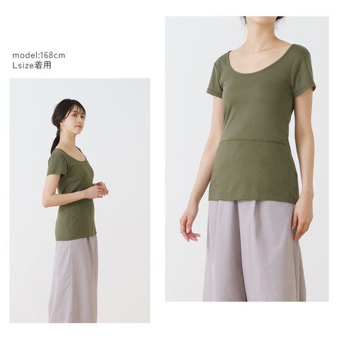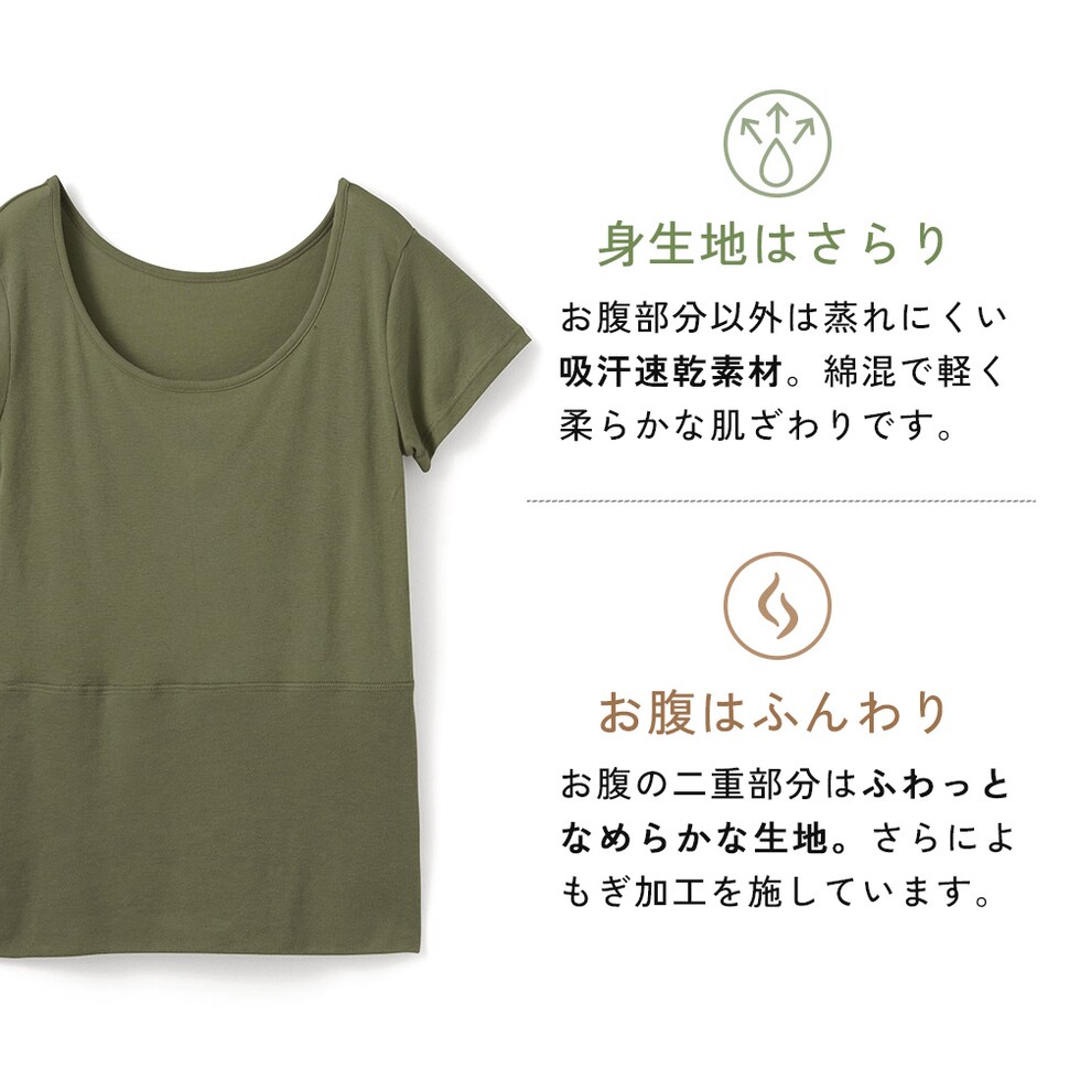 レディース インナー インナー 半袖 おなか想い よもぎ加工 フレンチ袖 ボタニカル お腹 暖か 保温 冷房対策 冷え防止 吸汗速乾 フレンチ 春夏 婦人 女性 下着 肌着 25SS L6502L-E 涼しい