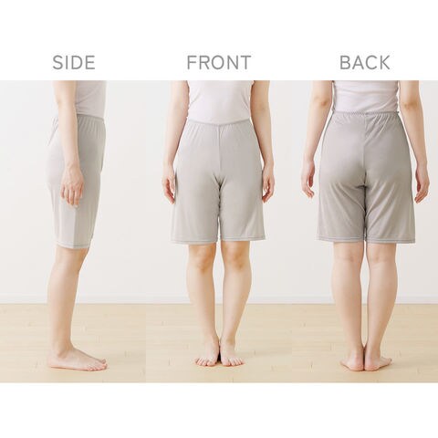 レディース インナー ムレ軽減 ペチパンツ 5分丈 春夏 汗対策 汗取り ボトムス ペチコート 速乾 さらさら ハーフパンツ インナーパンツ スパッツ 汗染み 防止 汗 対策 膝丈 女性 肌着 婦人 下着 L9927L-E 涼しい