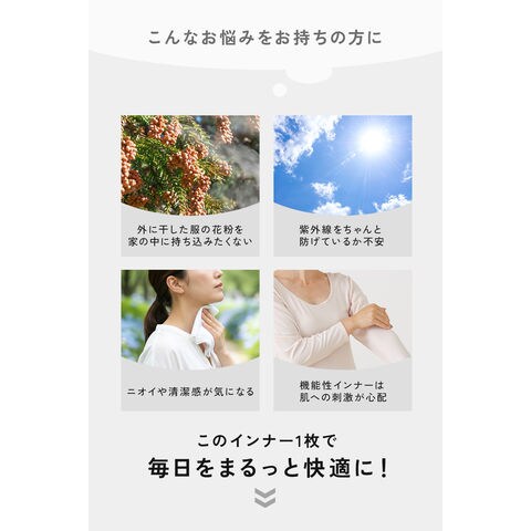 花粉対策 UVカットインナー レディース 長袖 ハイネック 綿混 抗菌防臭 紫外線対策 婦人 肌着 L9992Z-E