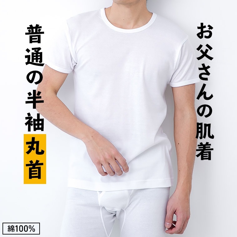 メンズ インナー 綿100% 紳士 肌着 普通の半袖シャツ 丸首 年間 クルーネック 下着 M0102X-E