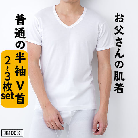 普通の 半袖 V首 シャツ メンズ 年間 Vネック Tシャツ 綿100 % 肌着 下着 普通 インナー 紳士 男性 シニア 抗菌 防臭 敬老の日 父の日 白 M/L/LL M0103X-E