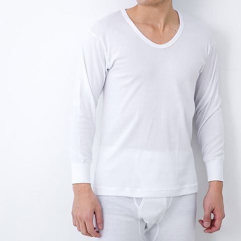 祭り用 普通の 長袖 U首 シャツ メンズ 年間 クルーネック Tシャツ 綿100 % 肌着 下着 普通 インナー 紳士 男性 祭り 秋祭り シニア 抗菌 防臭 敬老の日 父の日 白 M/L/LL M0131X-E